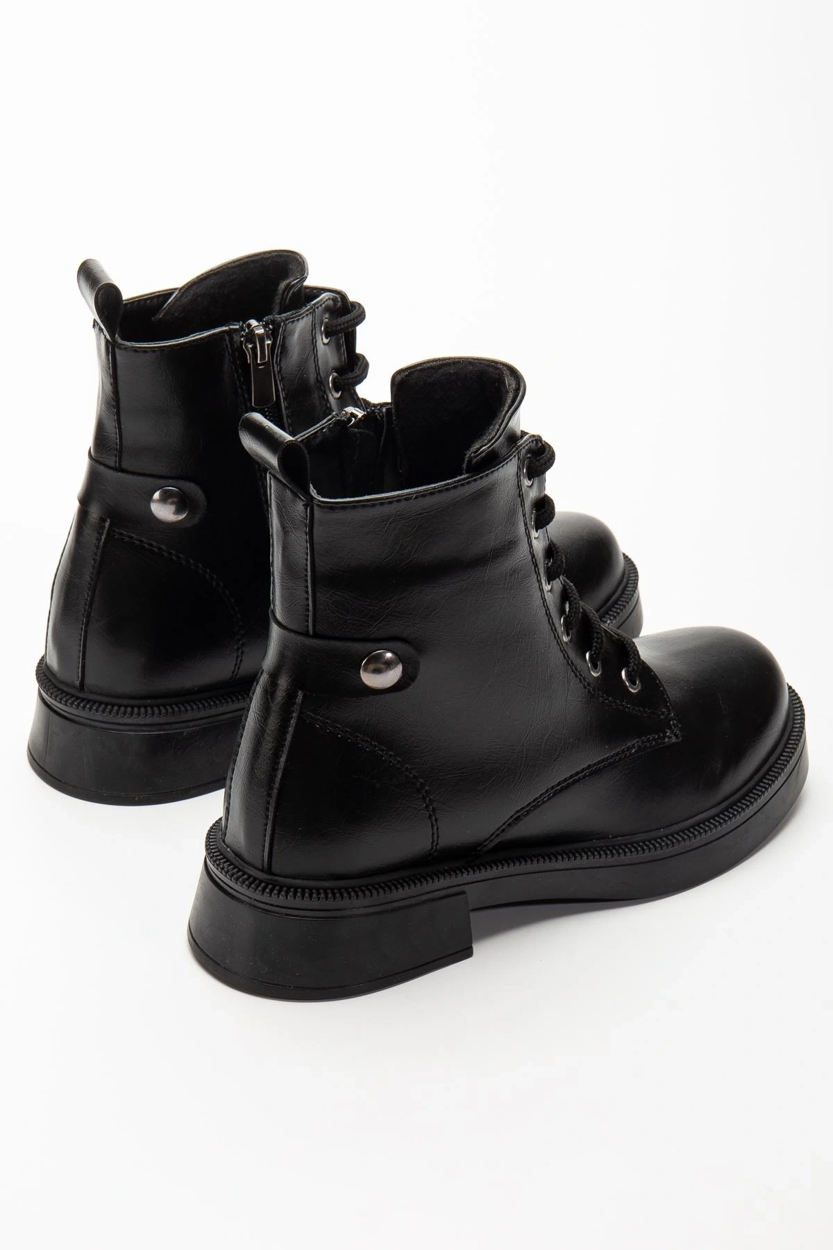 02-356 Siyah Düz Topuklu Bağcıklı Fermuarlı Günlük Kadın Bot