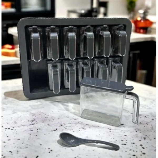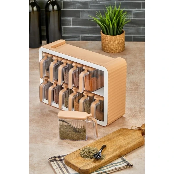 12'Lİ STANDLI KAŞIKLI BAHARATLIK SETİÜrün Özellikleri12'li Standlı Kaşıklı Baharatlık Seti, pratik tasarımı ve modern görünümü ile mutfak düzeninizi kolaylaştırır. 12 farklı bölmesi sayesinde çeşitli baharatları düzenli bir şekilde saklama imkanı sunar. Her bir bölme, ölçüm için uygun bir kaşık içerir ve şeffaf kapları sayesinde içerikler kolayca görülebilir. Standlı yapısı, mutfak tezgahında yer tasarrufu sağlar ve şık bir görünüm katar. Kaliteli plastik malzemeden üretilmiş bu baharatlık seti, dayanıklı yapısı ile uzun ömürlü kullanım sunar. Modüler tasarımı sayesinde temizliği oldukça kolaydır.Not: Ürün iki farklı renkte mevcuttur ve stok durumuna göre karışık gönderilmektedir.Paket İçeriği12 adet Şeffaf Baharat Kabı12 adet Kapaklı Ölçü Kaşığı1 adet Stand