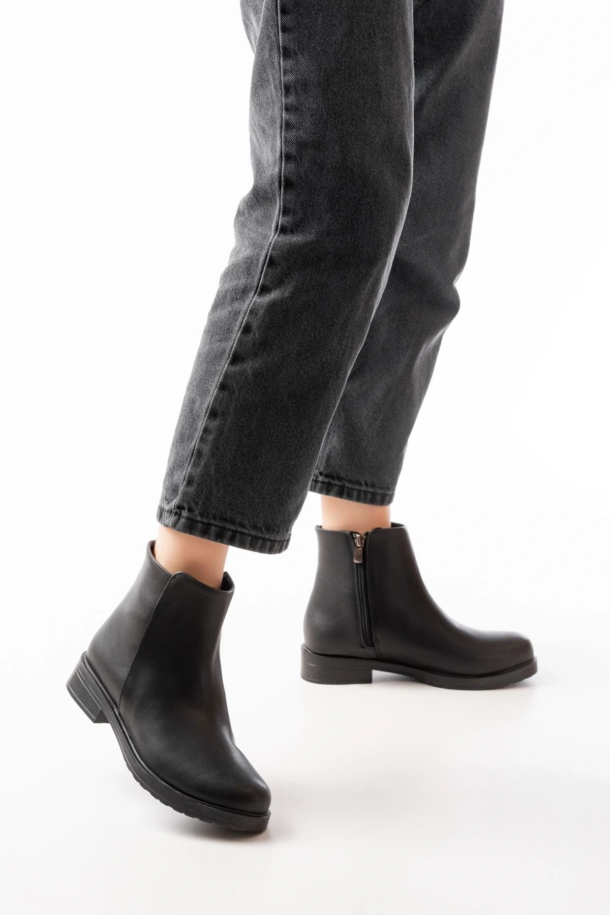 ASM-086 Siyah Fashion Aksesuarlı Fermuarlı Günlük Kadın Bot