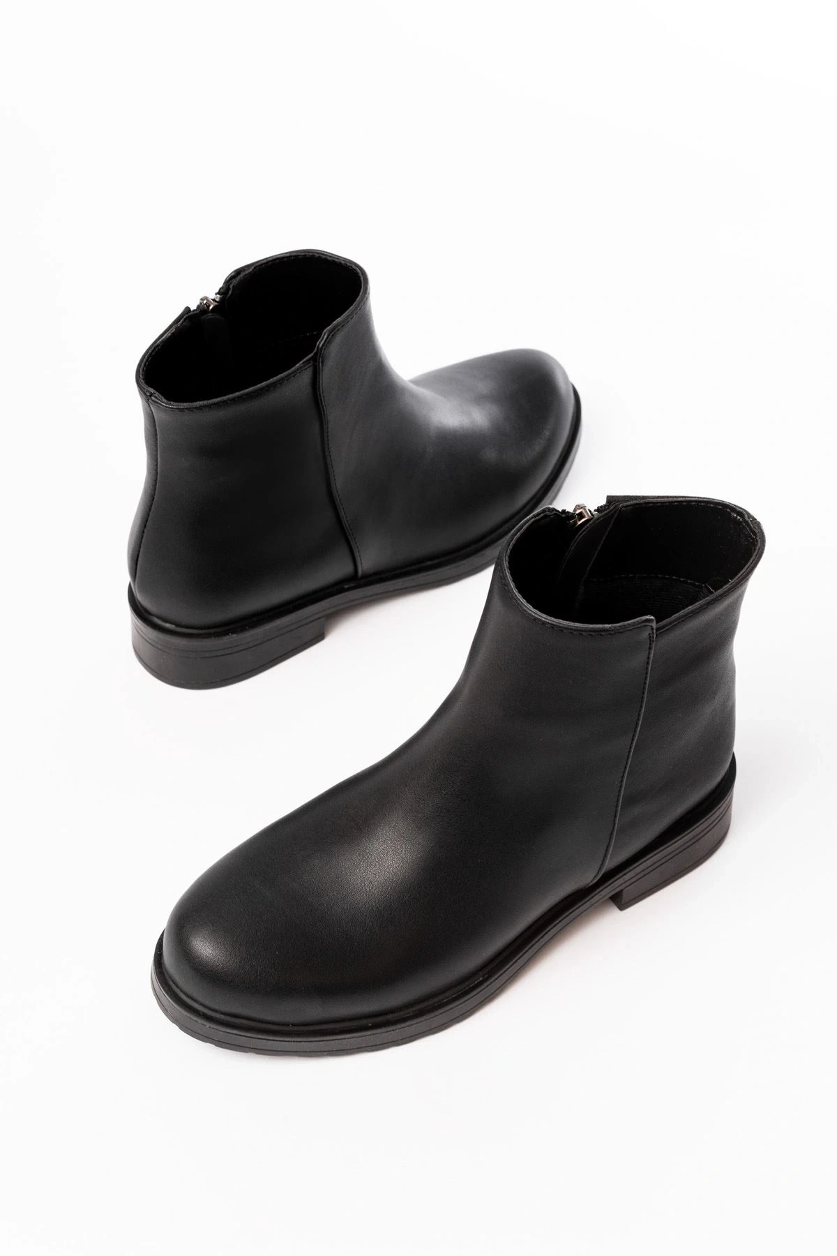 02-356 Siyah Düz Topuklu Bağcıklı Fermuarlı Günlük Kadın Bot