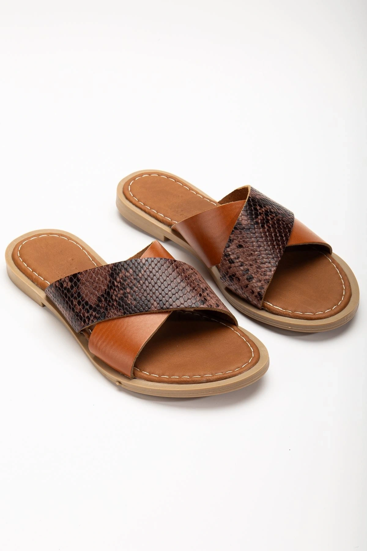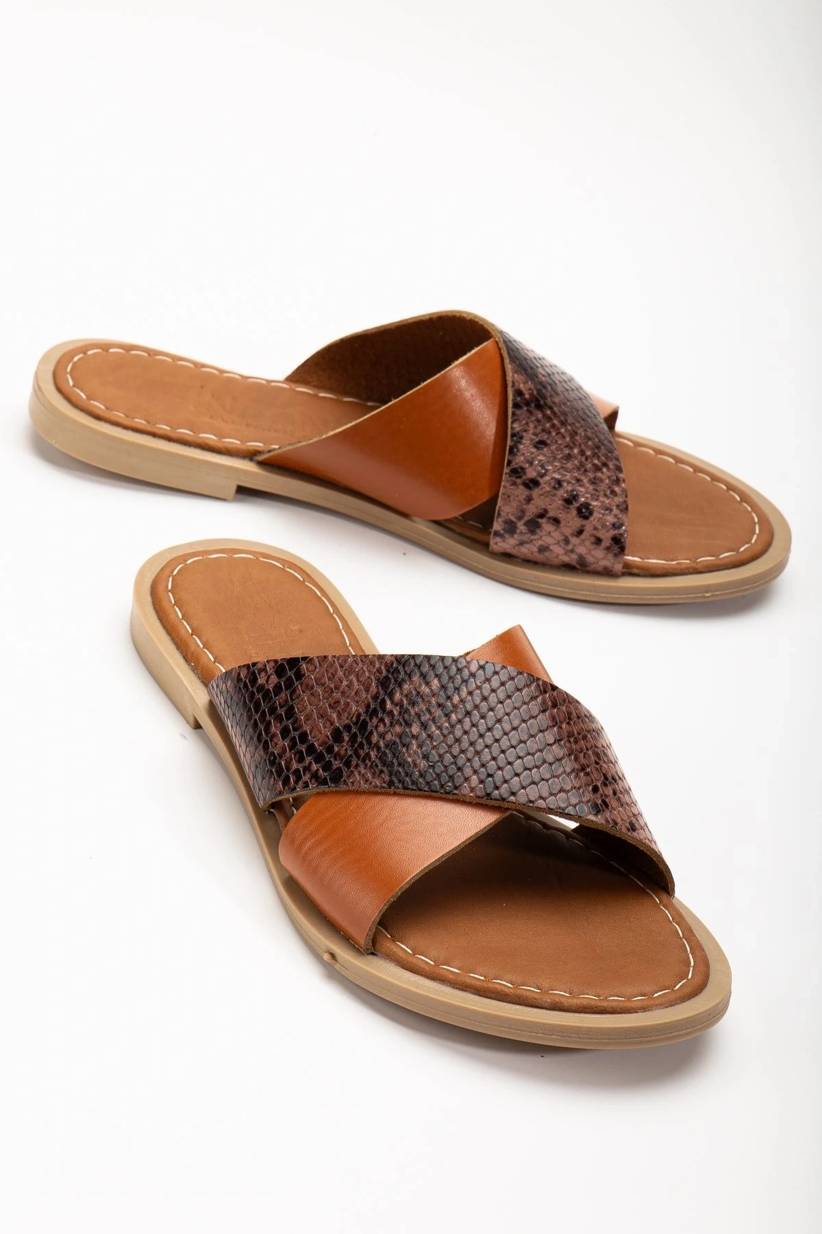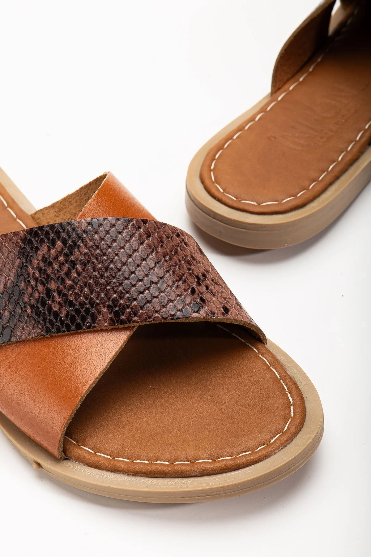 169-076 Taba Ortopedik Hakiki Deri Çapraz Bantlı Kadın Terlik