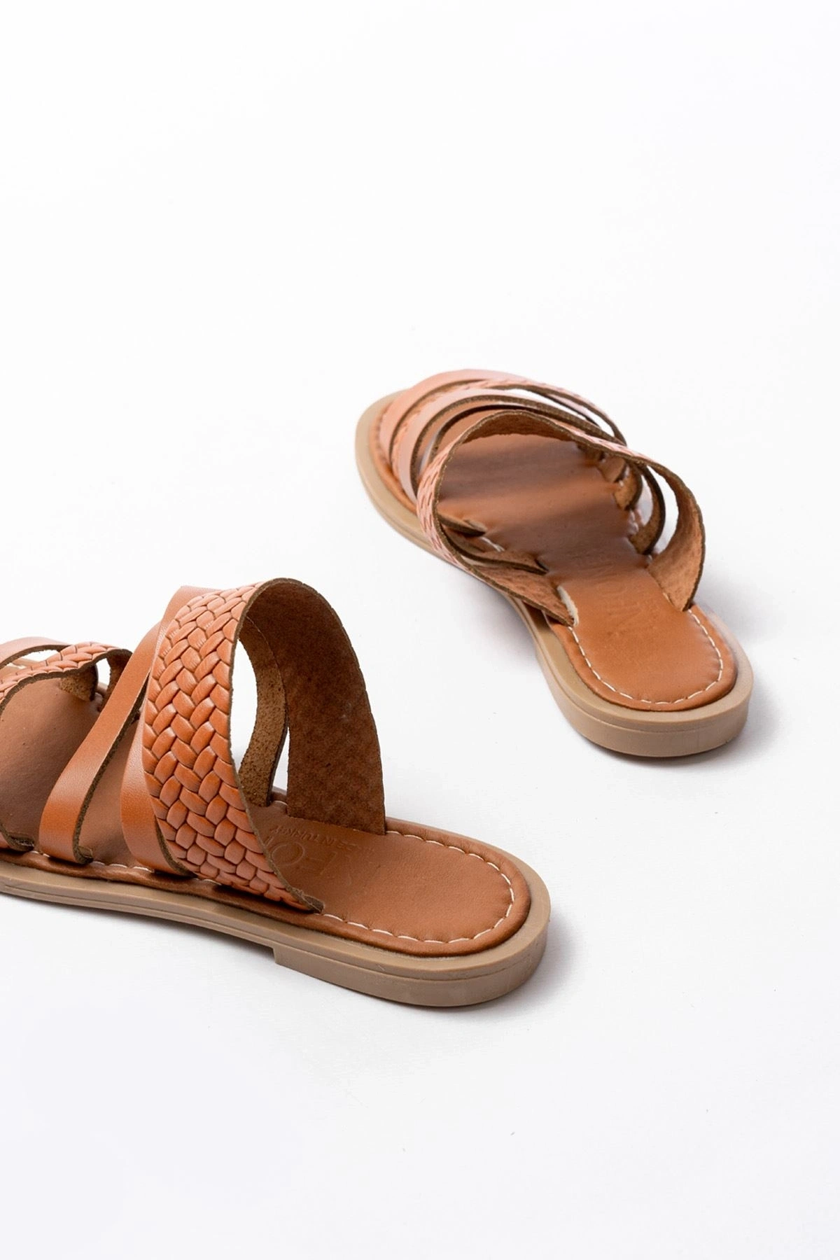 169-161 Taba Örgülü Ortopedik Taban Hakiki Deri Kadın Sandalet