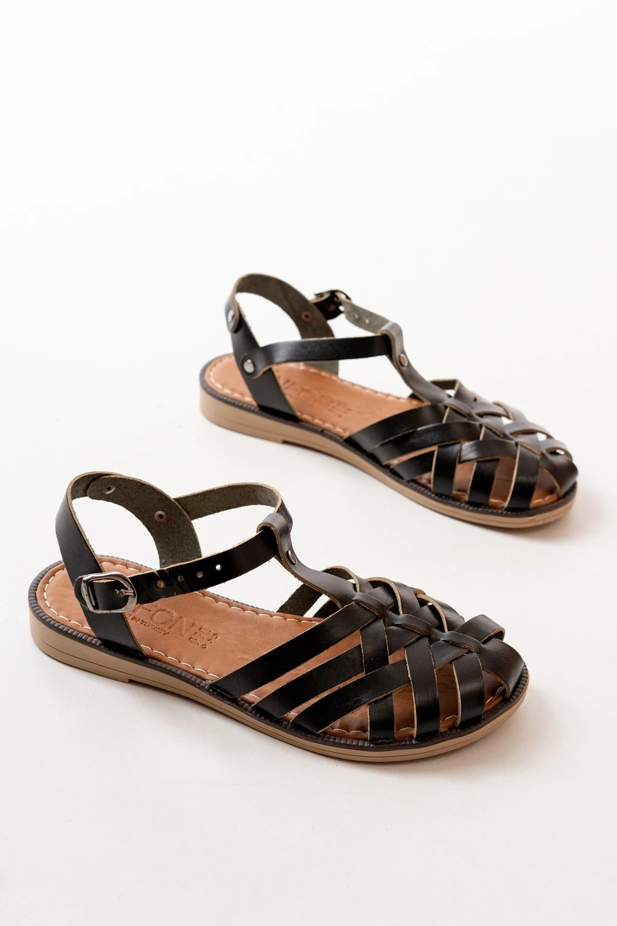 205-01 Siyah Bilekten Bağlamalı Ortopedik Hakiki Deri Kadın Sandalet