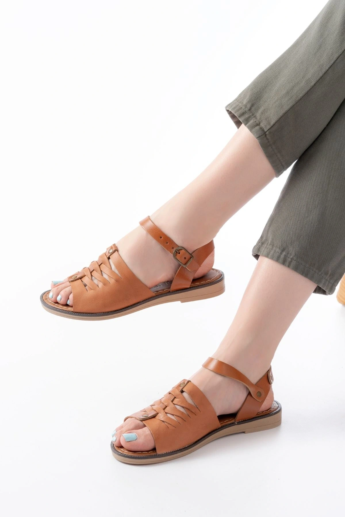 205-029 Taba Ortopedik Hakiki Deri Kadın Sandalet