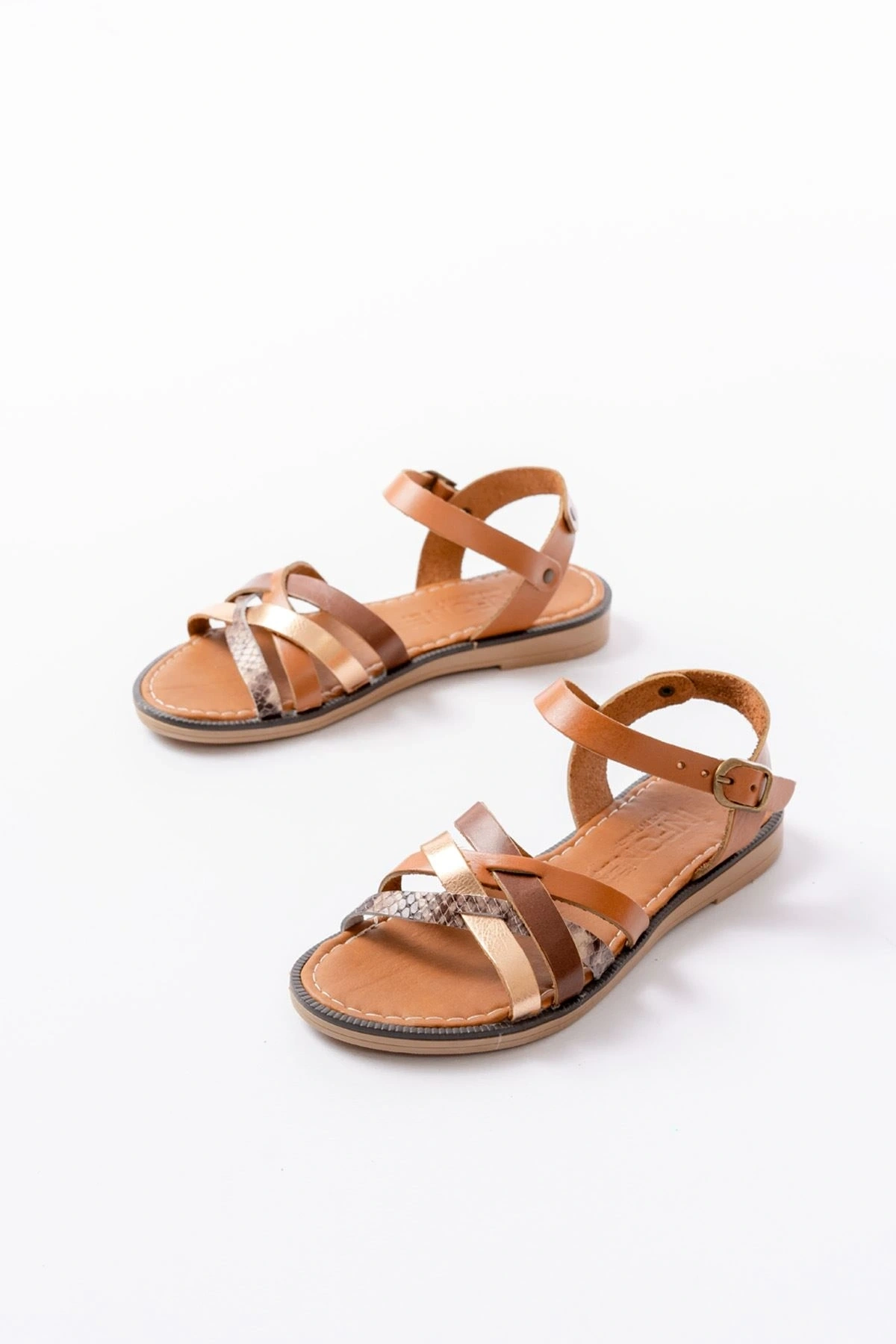 205-093 Taba Garni Hakiki Deri Ortopedik Taban Kadın Sandalet
