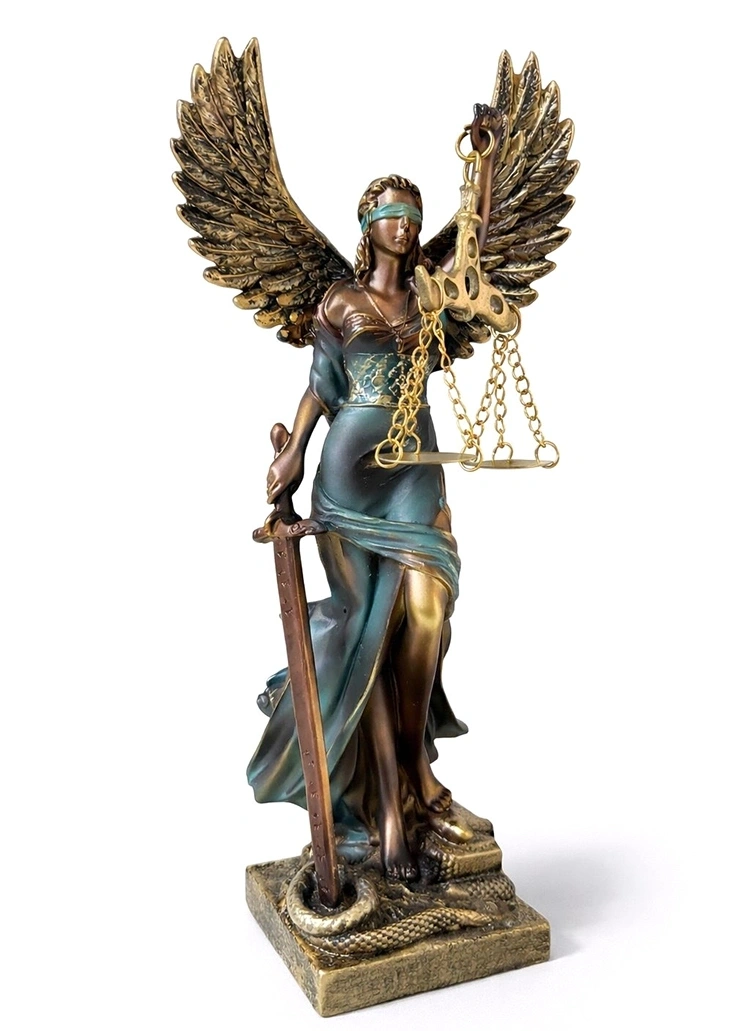24X7 CM POLYESTER KANATLI ADALET BİBLOSUÜrün Özellikleri24x7 cm Polyester Kanatlı Adalet Biblosu, klasik adalet figürüne kanat detayı eklenmiş özel tasarımı ile dekoratif alanlarda dikkat çekici bir görünüm sunar. 24x7 cm ölçülerindeki kompakt boyutu sayesinde masa, kitaplık ve raf üzerinde rahatlıkla sergilenebilir. Polyester malzemeden üretilmiş olan kanatlı adalet biblosu, detaylı figür yapısı ile estetik bir duruş sağlar. Hukuk büroları, ofisler ve çalışma alanları için anlam yüklü bir aksesuar olan polyester adalet figürü, bulunduğu ortama güçlü ve sembolik bir karakter kazandırır. Zarif kanat tasarımı ile klasik modellerden ayrılan dekoratif adalet heykeli, hem modern hem de geleneksel dekorasyonlara uyum sağlayan şık bir objedir.Ürün Teknik Özellikleri Özellik Açıklama Ürün Adı 24x7 cm Polyester Kanatlı Adalet Biblosu Boyut 24 x 7 cm Malzeme Polyester Tasarım Kanatlı Adalet Figürü Kullanım Alanı Ofis, Hukuk Bürosu ve Dekoratif Alanlar Paket İçeriği1 Adet 24x7 cm Polyester Kanatlı Adalet Biblosu