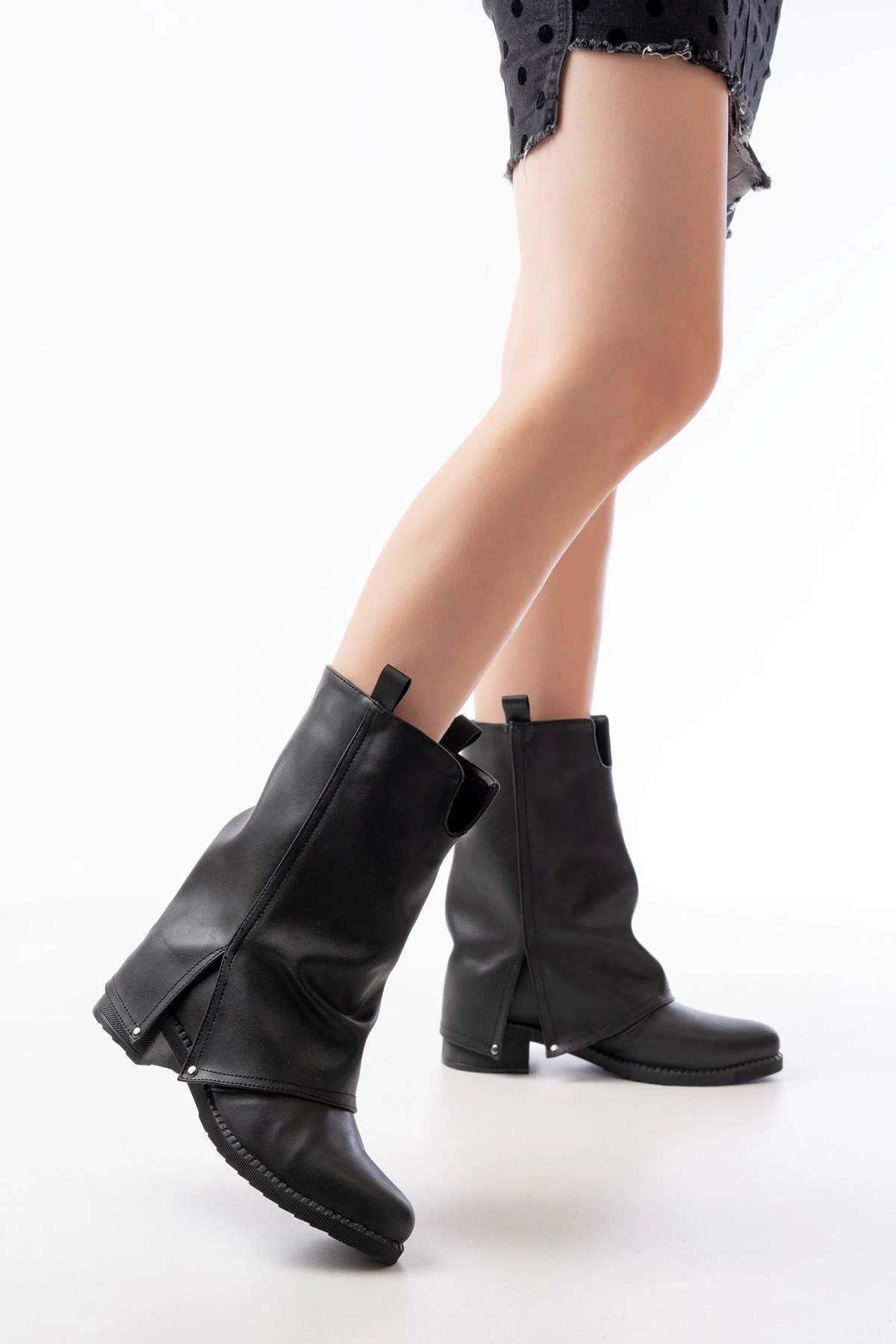 ASM-086 Siyah Fashion Aksesuarlı Fermuarlı Günlük Kadın Bot