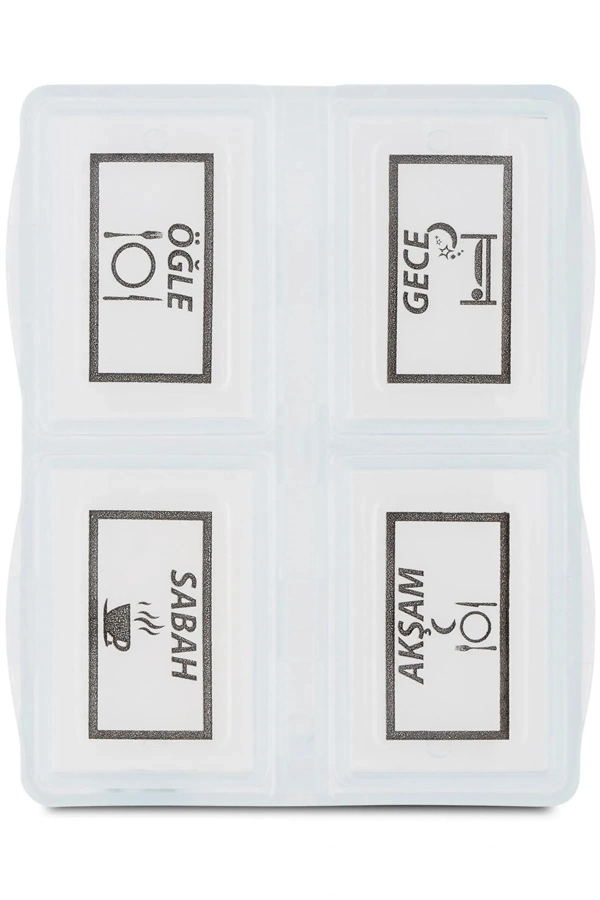 4 farklı bölmeden oluşan Haftalık İlaç Kutusu, kapaklı mekanizmaya sahiptir.