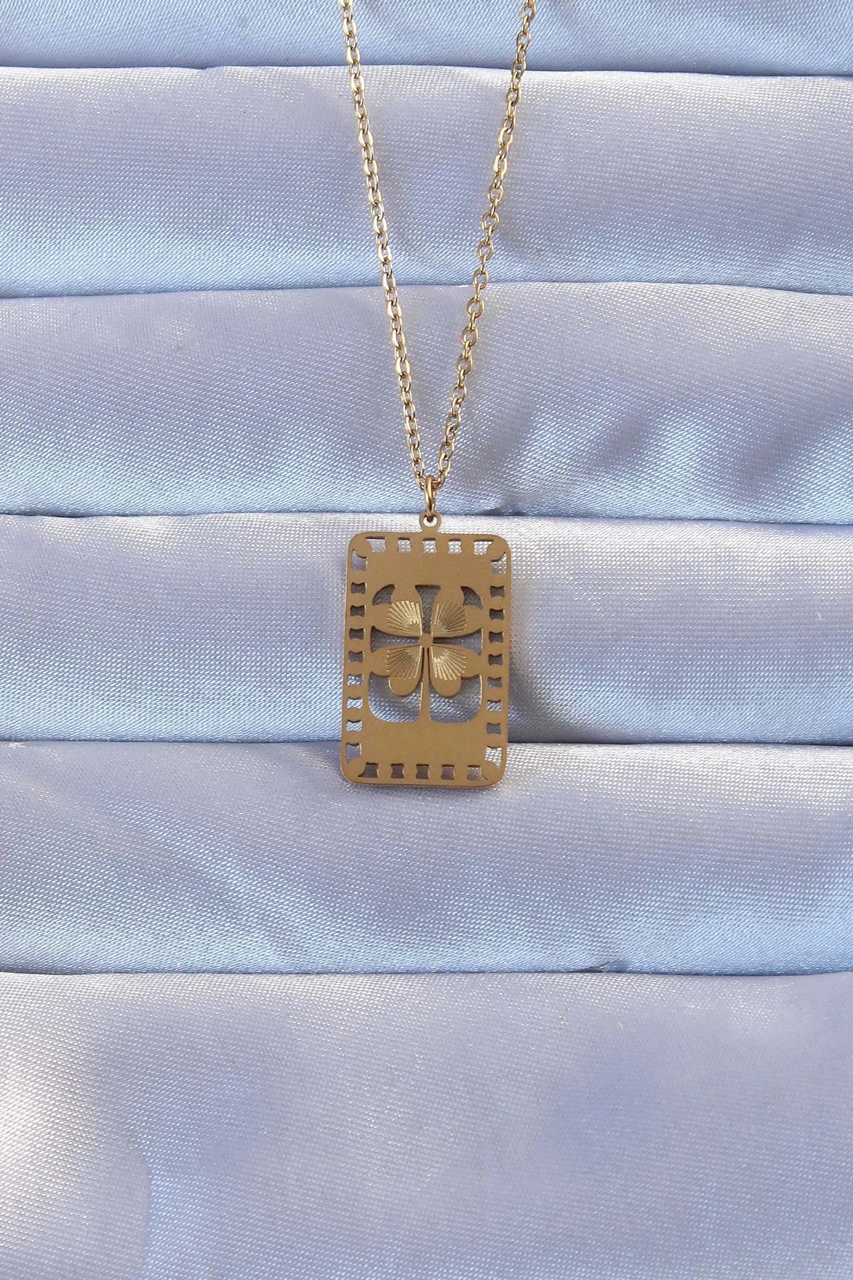 316L Altın Renk İşlemeli Yonca Model Vintage Kolye