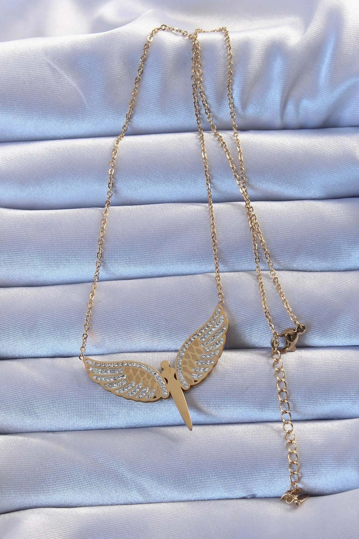 316L Çelik Altın Renk Zirkon Taşlı Mikail Kolye