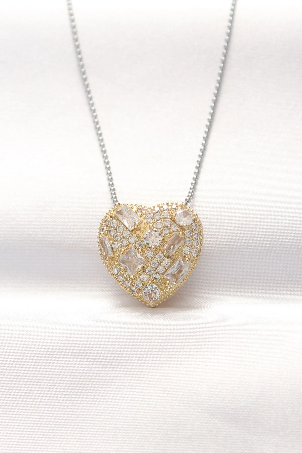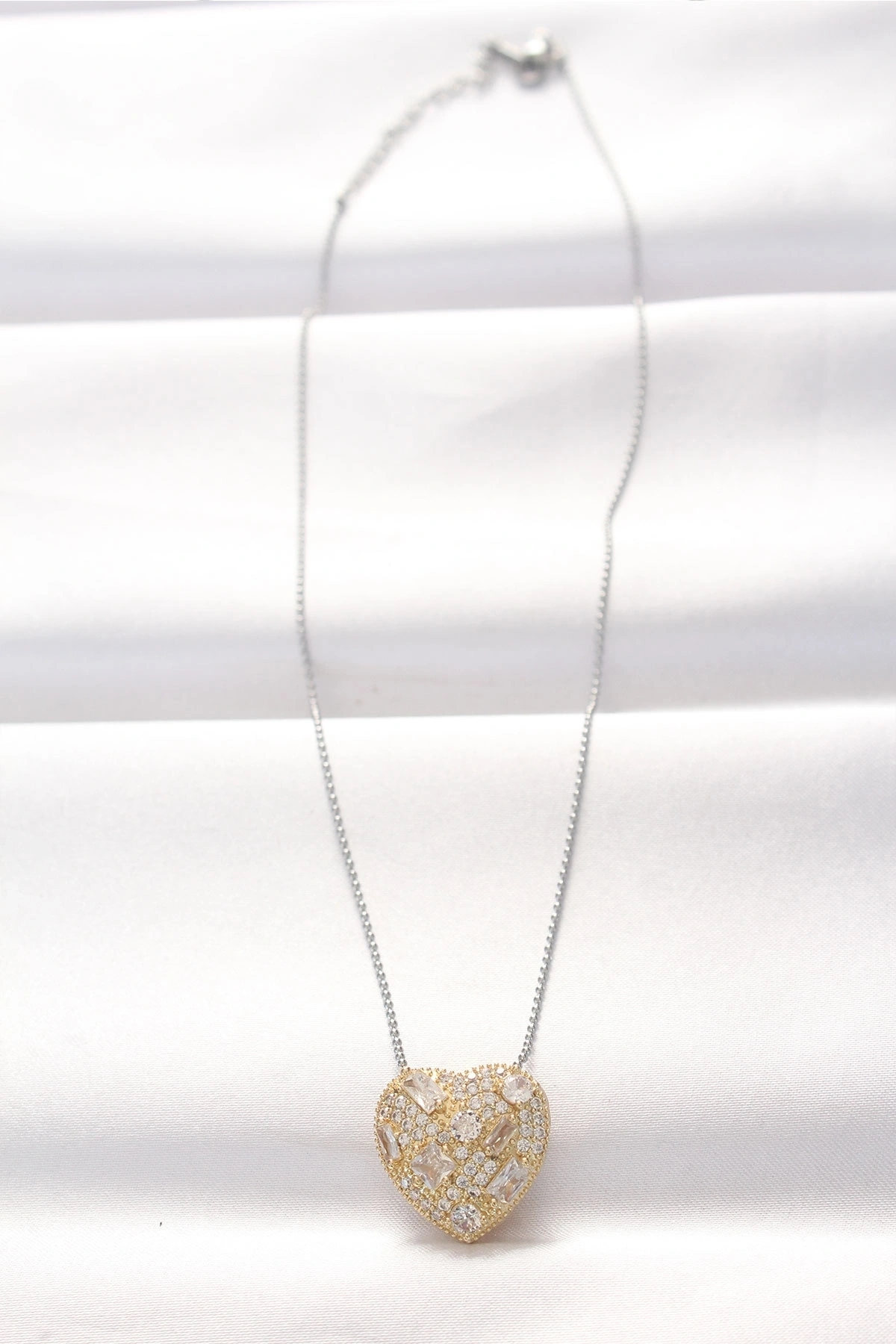 316L Çelik Çift Renk Zirkon Taşlı Kalp Kolye