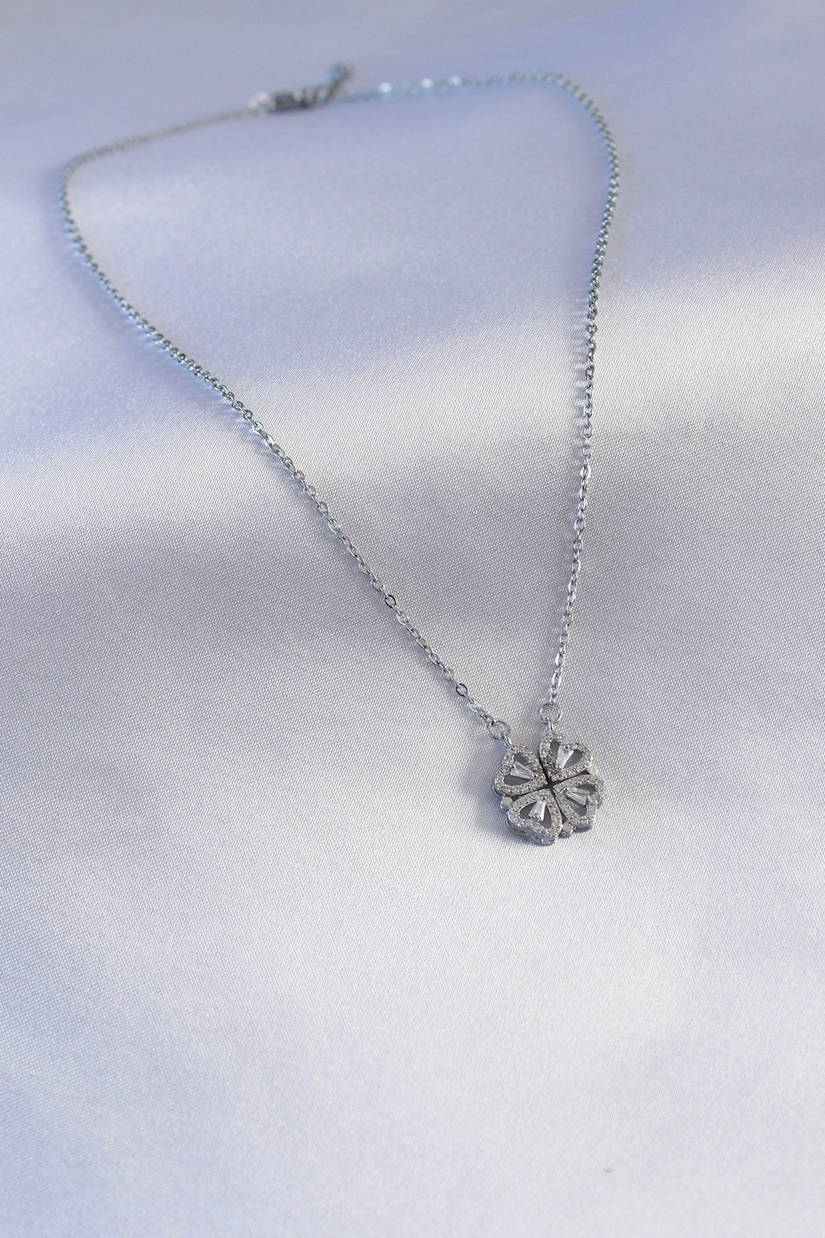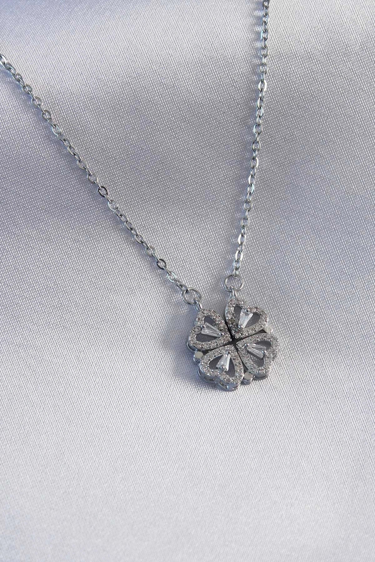 316L Çelik Gümüş Renk Açılır Yonca Model Kadın Kolye
