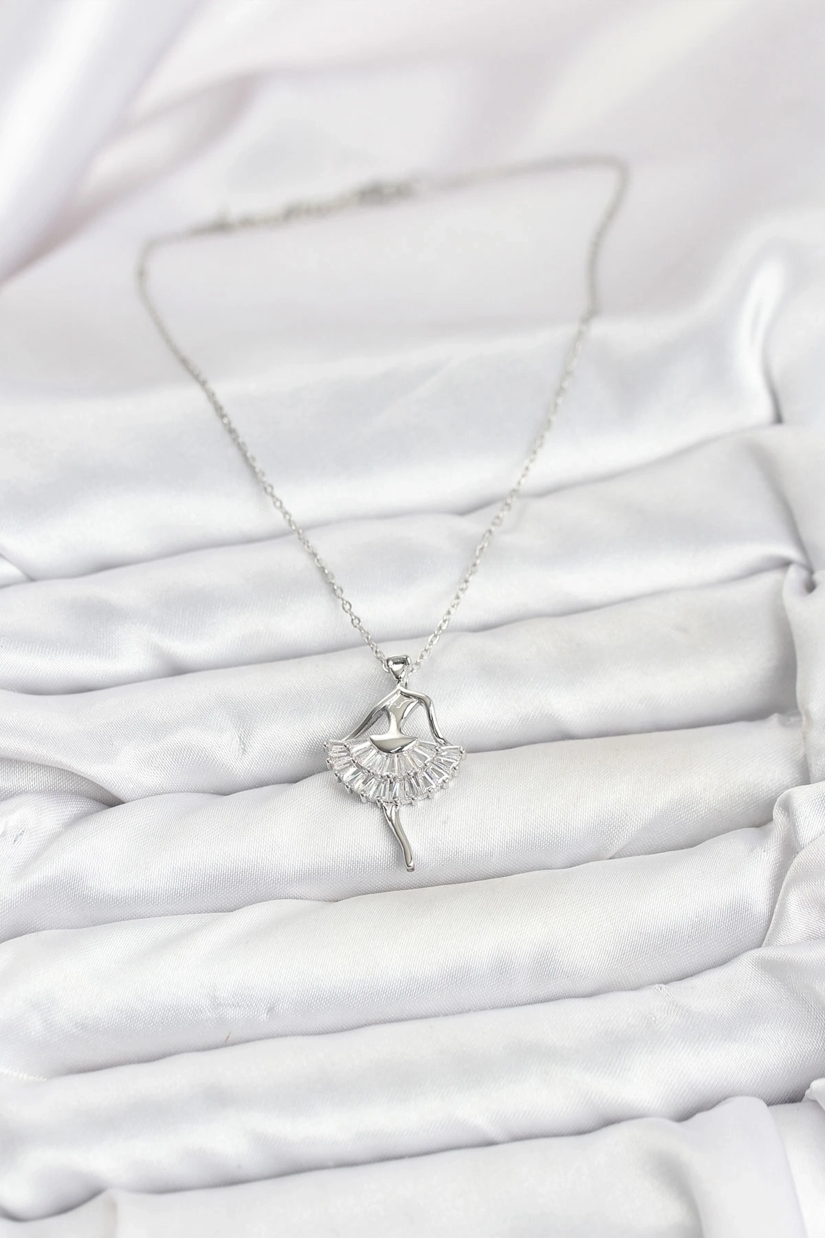 316L Çelik Gümüş Renk Balerin Model Kadın Kolye