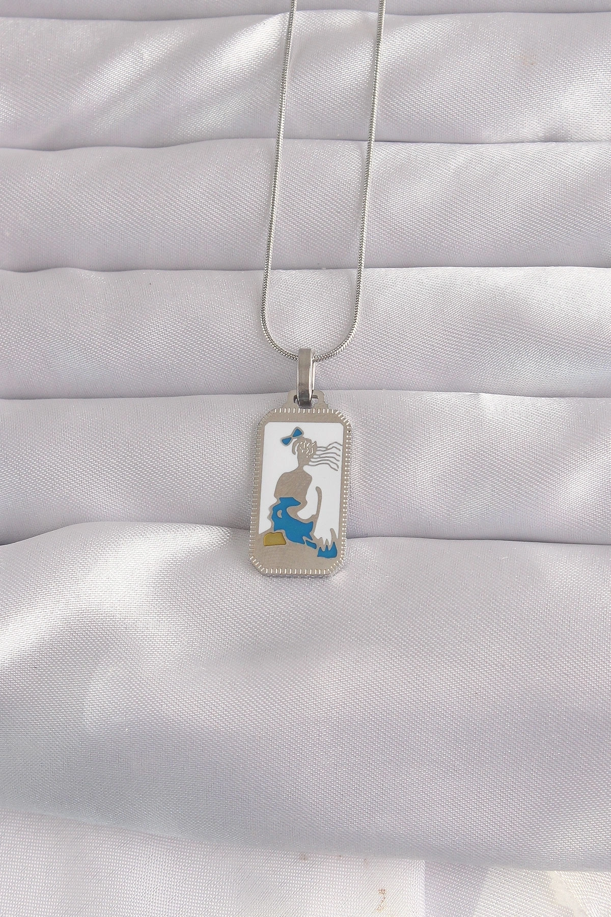 316L Çelik Gümüş Renk Beyaz Mineli Kız Figür Tarot Kolye