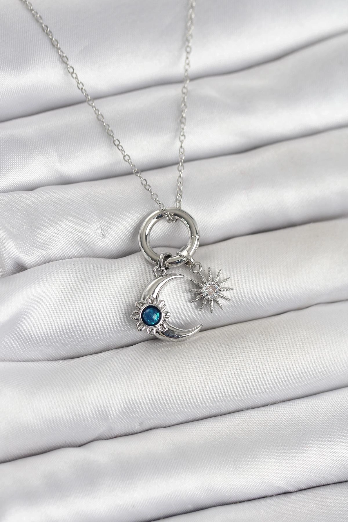 316L Çelik Gümüş Renk Gece Gündüz Tema Charmlı Kadın Kolye