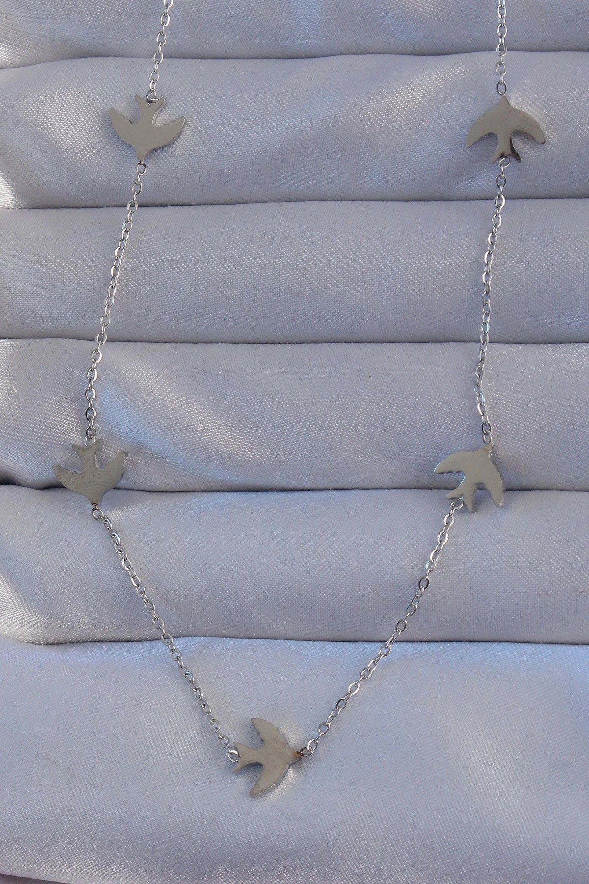 316L Çelik Gümüş Renk Kuş Model Kolye