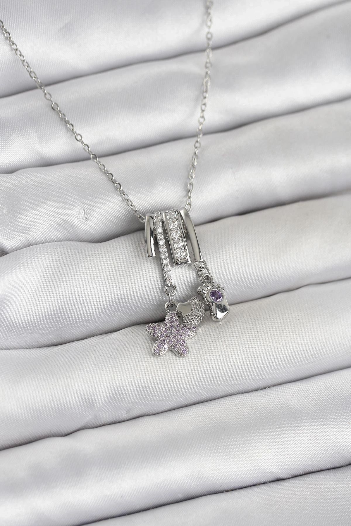 316L Çelik Gümüş Zirkon Taşlı Deniz Tema Charmlı Kadın Kolye