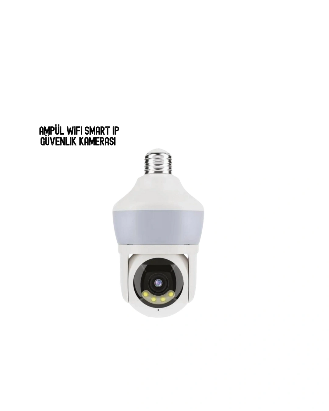 Ev ve iş yeri güvenliğini pratik, akıllı ve erişilebilir hale getiren Full HD Wi-Fi Akıllı Ampül Kamera, modern yaşamın ihtiyaçlarına uygun şekilde tasarlanmış çok yönlü bir güvenlik çözümüdür. Ampül formundaki yenilikçi tasarımı sayesinde standart duy yuvasına kolayca takılarak kullanılabilir ve ekstra montaj, kablolama ya da teknik bilgi gerektirmez. Bu yönüyle hem zamandan tasarruf sağlar hem de estetik bir kullanım sunar.Kameranın 360° döner başlığı ve 110° geniş görüş açısı, tek bir cihazla geniş alanların eksiksiz şekilde izlenmesine olanak tanır. Kör nokta bırakmayan bu yapı sayesinde evinizin, ofisinizin veya mağazanızın her köşesi sürekli kontrol altında olur. Full HD 1080P çözünürlük, görüntülerin net, akıcı ve detaylı olmasını sağlayarak yüzleri, hareketleri ve nesneleri kolayca ayırt etmenize yardımcı olur.Gelişmiş gece görüş özelliği, düşük ışık koşullarında dahi etkili performans sunar. 5–10 metreye kadar net görüş sağlayan gece modu sayesinde karanlık ortamlarda bile güvenliğiniz kesintiye uğramaz. 2.4 GHz Wi-Fi bağlantısı, kamerayı internet üzerinden mobil cihazlarınıza bağlamanızı sağlar. iOS ve Android uyumlu mobil uygulama ile dünyanın neresinde olursanız olun canlı görüntü izleyebilir, geçmiş kayıtları inceleyebilir ve ayarları kolayca yönetebilirsiniz.Hareket algılama özelliği, ortamda şüpheli bir hareket algılandığında anında bildirim göndererek hızlı müdahale imkânı sunar. Kayıtlar, Micro SD kart (32–64 GB önerilir) ile yerel olarak saklanabilir veya isteğe bağlı olarak bulut kayıt sistemi kullanılabilir. USB DC 5V güç girişi, kameranın adaptör ya da powerbank ile çalışmasına olanak tanıyarak esnek kullanım sağlar.Bebek ve yaşlı güvenliği, evcil hayvan takibi, ev ve ofis izleme gibi birçok alanda kullanılabilen bu akıllı ampül kamera; kolay kurulumu, akıllı özellikleri ve yüksek görüntü kalitesiyle güvenliği herkes için ulaşılabilir hale getirir.