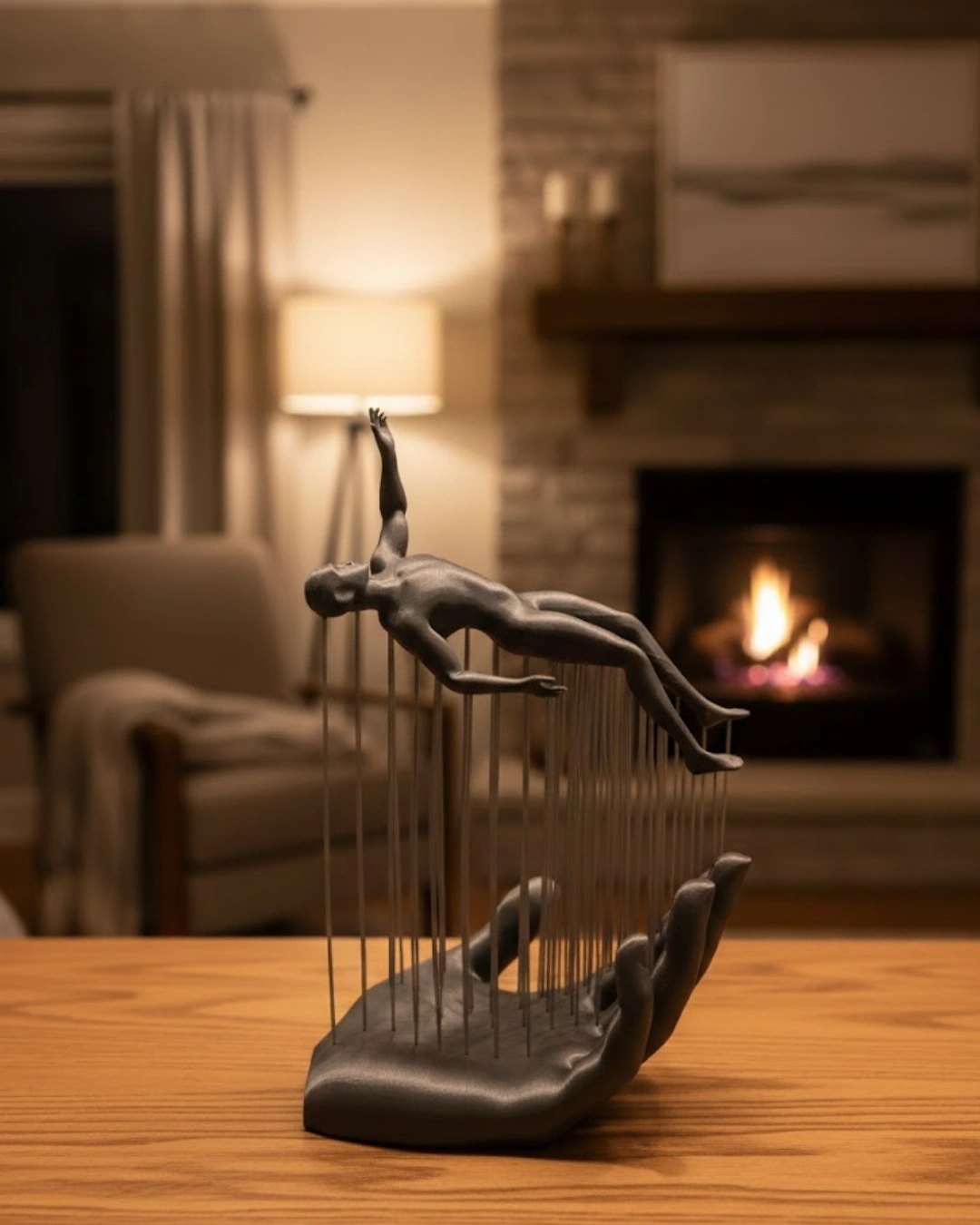 Modern sanat anlayışını yansıtan 3D El Formlu İnsan Figürü Gri, dekorasyona sofistike bir dokunuş ekler. El formu üzerinde konumlanan insan figürü, soyut duruşu ile anlamlı ve estetik bir kompozisyon oluşturur.Gri rengi, mekânda sade ama güçlü bir etki yaratır. Kitaplık, raf, konsol veya masa üstünde sergilendiğinde bulunduğu alanın havasını değiştirir. Minimal ve modern ev dekorasyonu sevenler için ideal bir dekoratif biblodur.