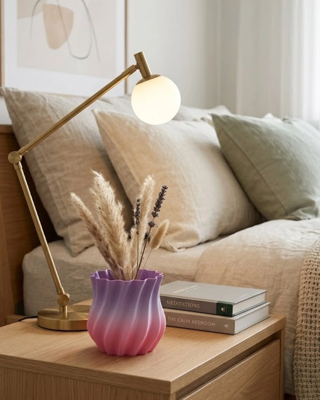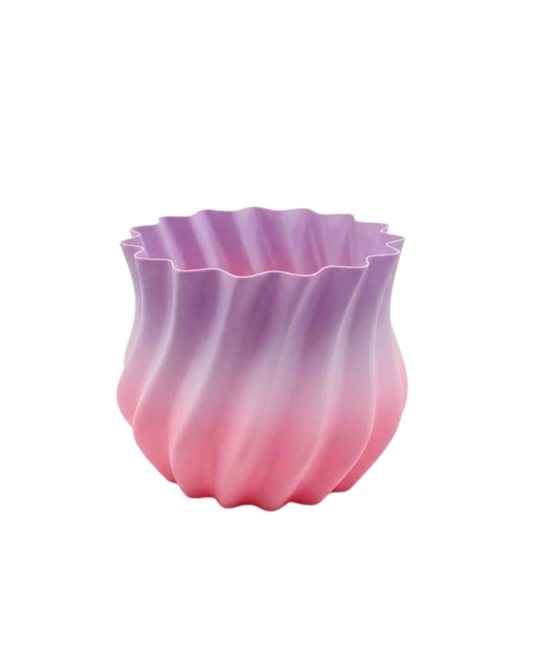 MoYaşam alanlarınıza zarif ve modern bir dokunuş katmak isteyenler için tasarlanan 3D kıvrımlı pembe lila vazo, özgün formu ve estetik renk geçişi ile dikkat çeken dekoratif bir üründür. Dalgalı ve akışkan yapısı sayesinde bulunduğu ortama hareket kazandırır ve sıradan dekorasyon anlayışının dışına çıkar.Pembe ve lila tonlarının uyumu, özellikle sade dekorasyonlarda güçlü bir vurgu oluşturarak mekâna canlılık katar. Bu renk kombinasyonu, hem romantik hem de modern bir atmosfer yaratır. Minimal ve feminen dekorasyon tarzlarını tamamlayan güçlü bir parçadır.Kompakt yapısı sayesinde evinizin birçok farklı alanında rahatlıkla kullanılabilir. Salon, yatak odası, çalışma alanı veya ofis dekorasyonunda estetik bir tamamlayıcı olarak tercih edilebilir. Hafif yapısı sayesinde kolay taşınabilir ve farklı dekorasyon düzenlerine uyum sağlar.Ürünün kaliteli üretim yapısı, uzun süreli kullanım imkanı sunar. Kıvrımlı yüzey detayları, ürüne sanatsal bir görünüm kazandırırken aynı zamanda ışıkla etkileşime girerek farklı görsel efektler oluşturur. Bu sayede bulunduğu ortamda dikkat çekici ve şık bir atmosfer yaratır.Bu vazo sadece dekoratif bir obje değil, aynı zamanda hediye olarak da oldukça anlamlı bir seçenektir. Doğum günü, yeni ev hediyesi veya özel günlerde tercih edilebilecek zarif ve estetik bir üründür.