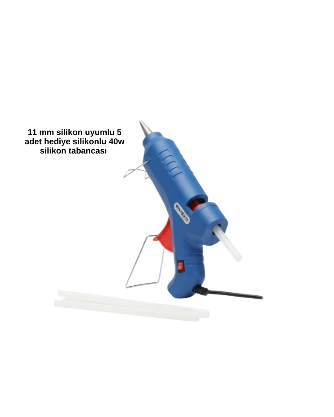 5 silikon hediyeli 40W sıcak silikon tabancası, ev ve hobi kullanımında vazgeçilmez bir yardımcıdır. Güçlü 40W motoru sayesinde silikon çubukları hızlıca eriterek zaman kazandırır. Paket içeriğinde yer alan 5 adet silikon, ürünü kullanıma hazır hale getirir.Ergonomik tasarımı sayesinde rahat kavrama sağlar ve uzun süreli çalışmalarda bile konfor sunar. Tetik mekanizması, silikon akışını dengeli biçimde ayarlamanıza yardımcı olur. Metal uç yapısı, düzgün ve temiz yapıştırmalar elde etmenizi sağlar.Sıcak silikon tabancası; tamirat, süsleme, el işi ve hobi projelerinde geniş kullanım alanına sahiptir. Çeşitli yüzeylerle uyumlu yapısı sayesinde çok yönlü kullanım imkânı sunar. Ev ortamında güvenle kullanılabilir.Isıya dayanıklı dış kasa, güvenli kullanım sağlar. Açma kapama düğmesi ile kontrol tamamen kullanıcıya aittir. Kompakt yapısı sayesinde kolay taşınır ve saklanır.5 silikon hediyeli bu sıcak silikon tabancası, pratikliği ve kullanım kolaylığı ile günlük işlerinizi zahmetsiz hale getirir.