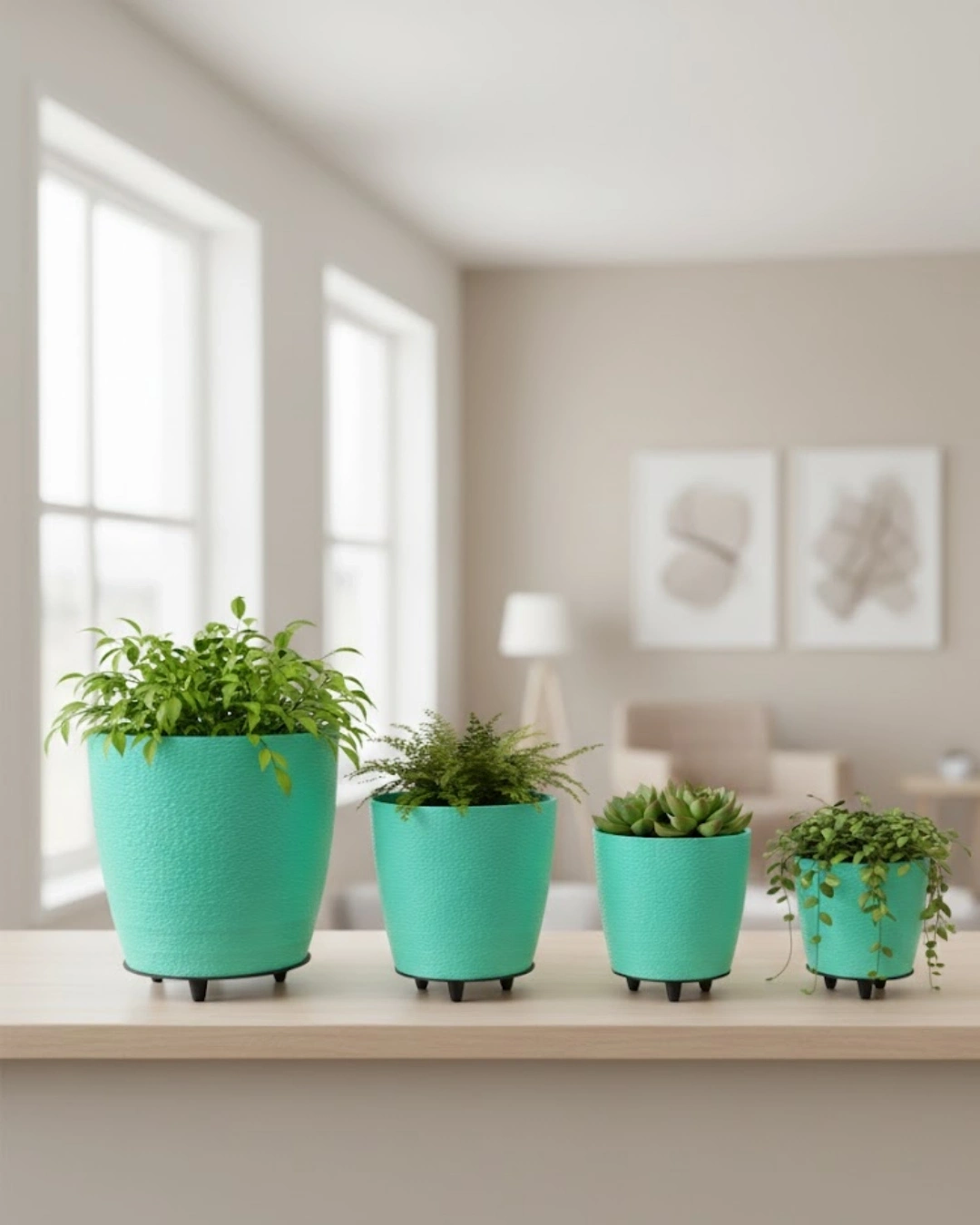4’lü 3D Dekoratif Yeşil Vazo Takımı, dekorasyonda sadelik ve şıklığı bir araya getirir. 3D dokulu yüzeyi ve modern ayak detayı ile estetik bir görünüm sunar. Mint yeşili rengi mekana canlılık ve huzur katar.Hem iç hem dış mekan kullanımına uygundur. Şık ve zamansız tasarımı sayesinde uzun yıllar dekorasyonunuza eşlik eder.