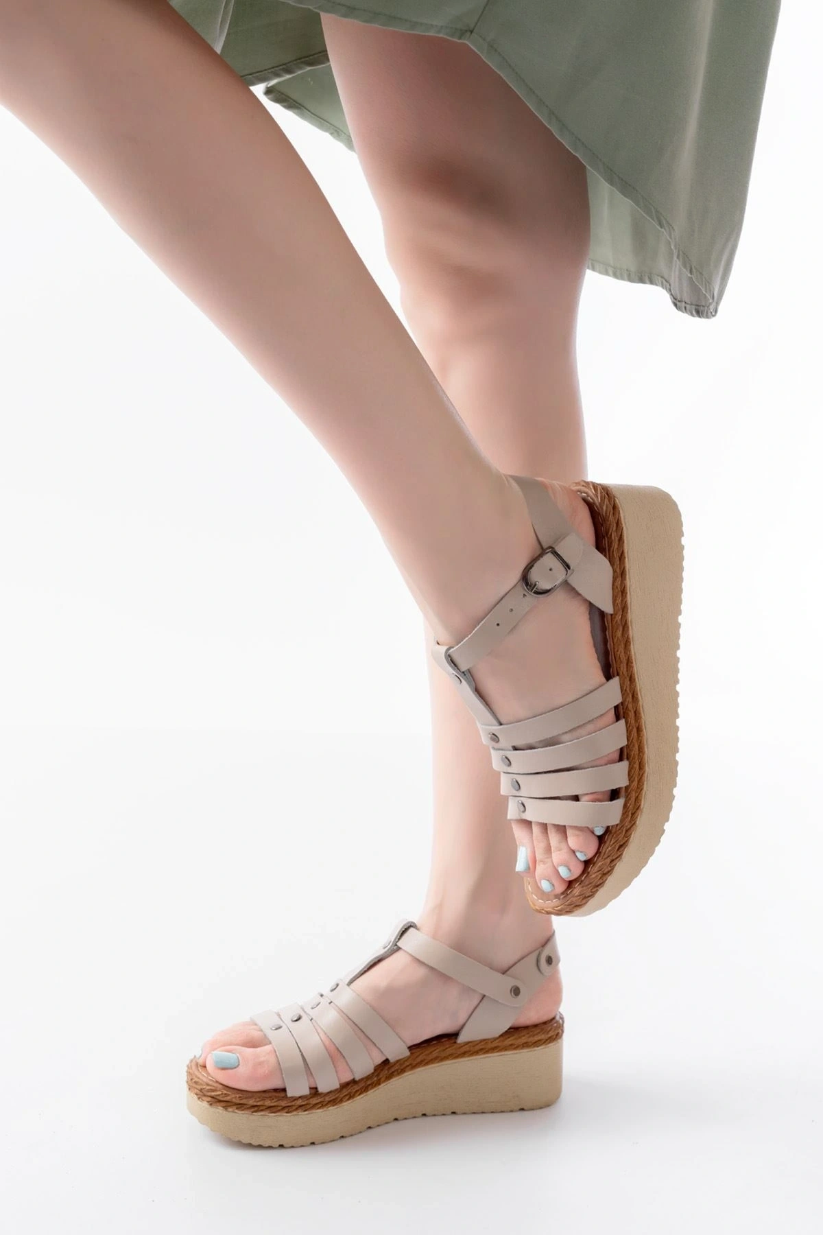 1001-1001 Bej Bilekten Bağcıklı Kadın Sandalet
