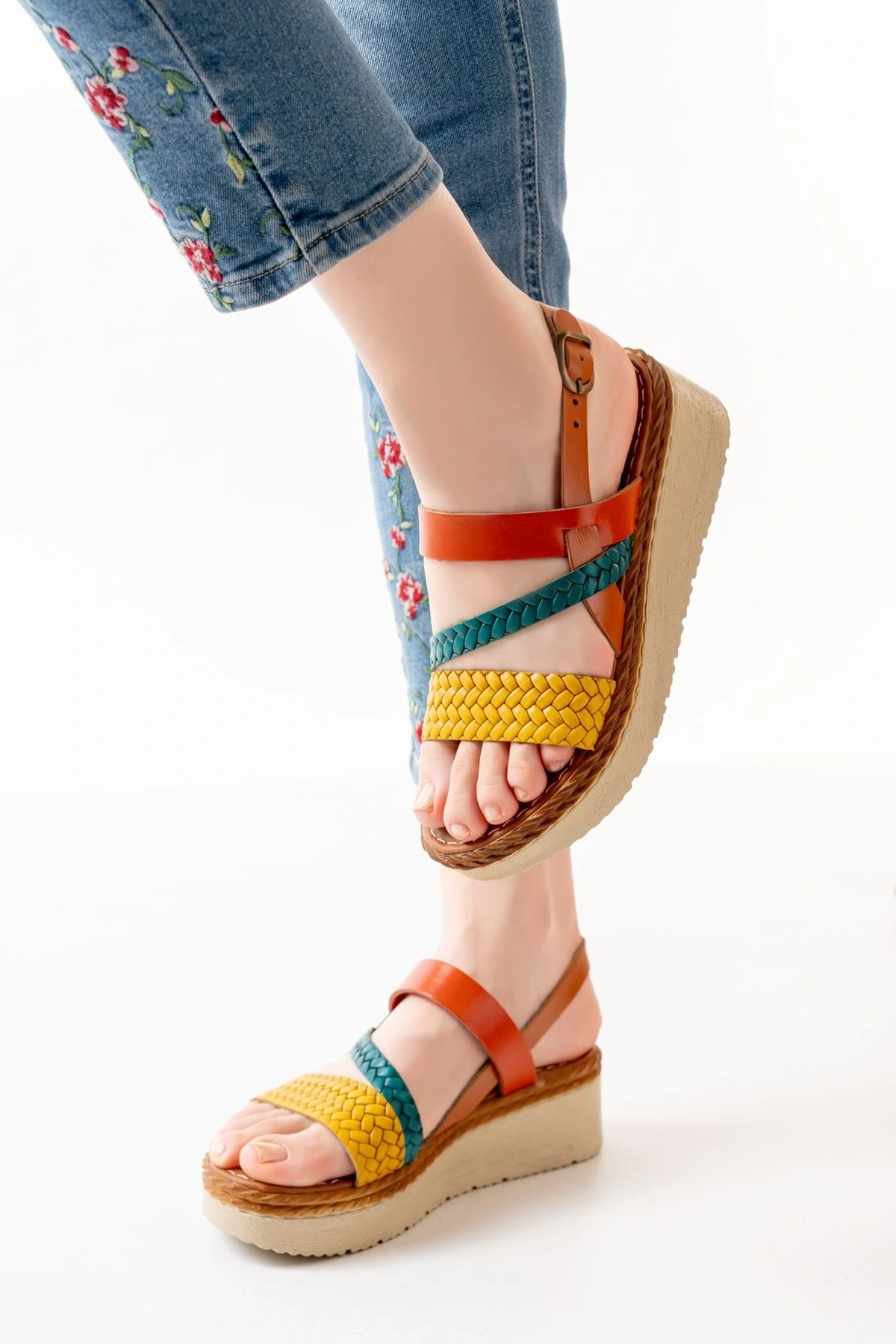730-152 Multi Ortopedik Hakiki Deri Dolgu Kadın Sandalet
