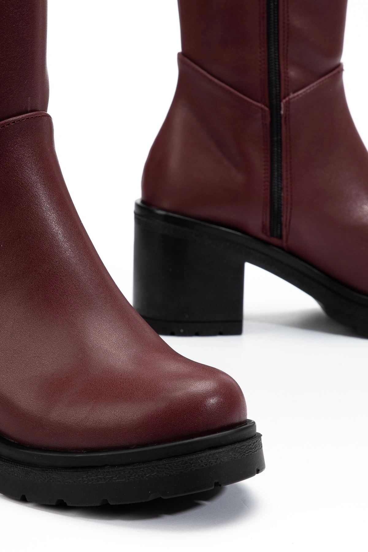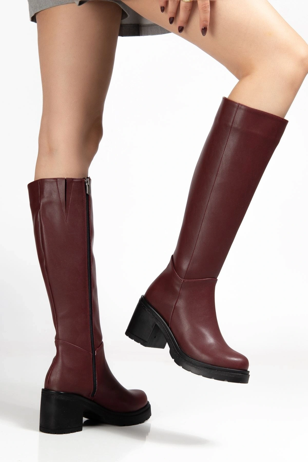 767-3013 Bordo Fermuarlı Günlük Kadın Çizme