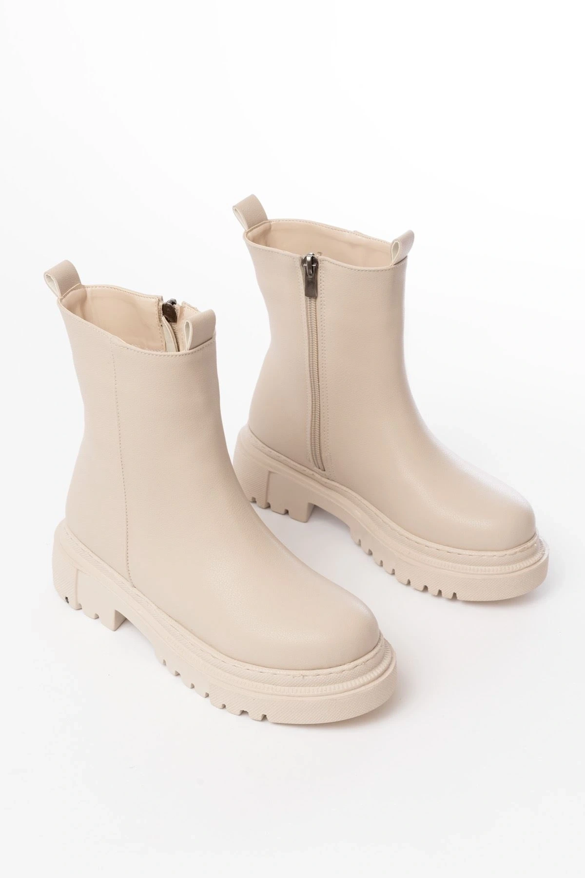 812-2012 Bej Luna Fermuarlı Günlük Kadın Bot
