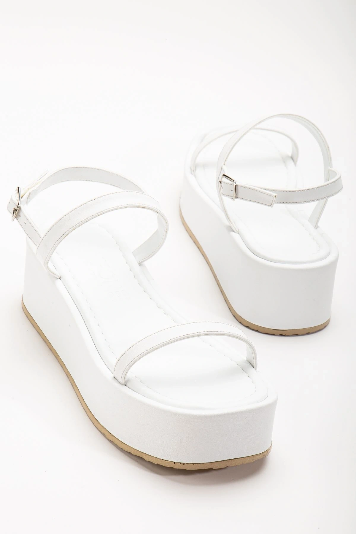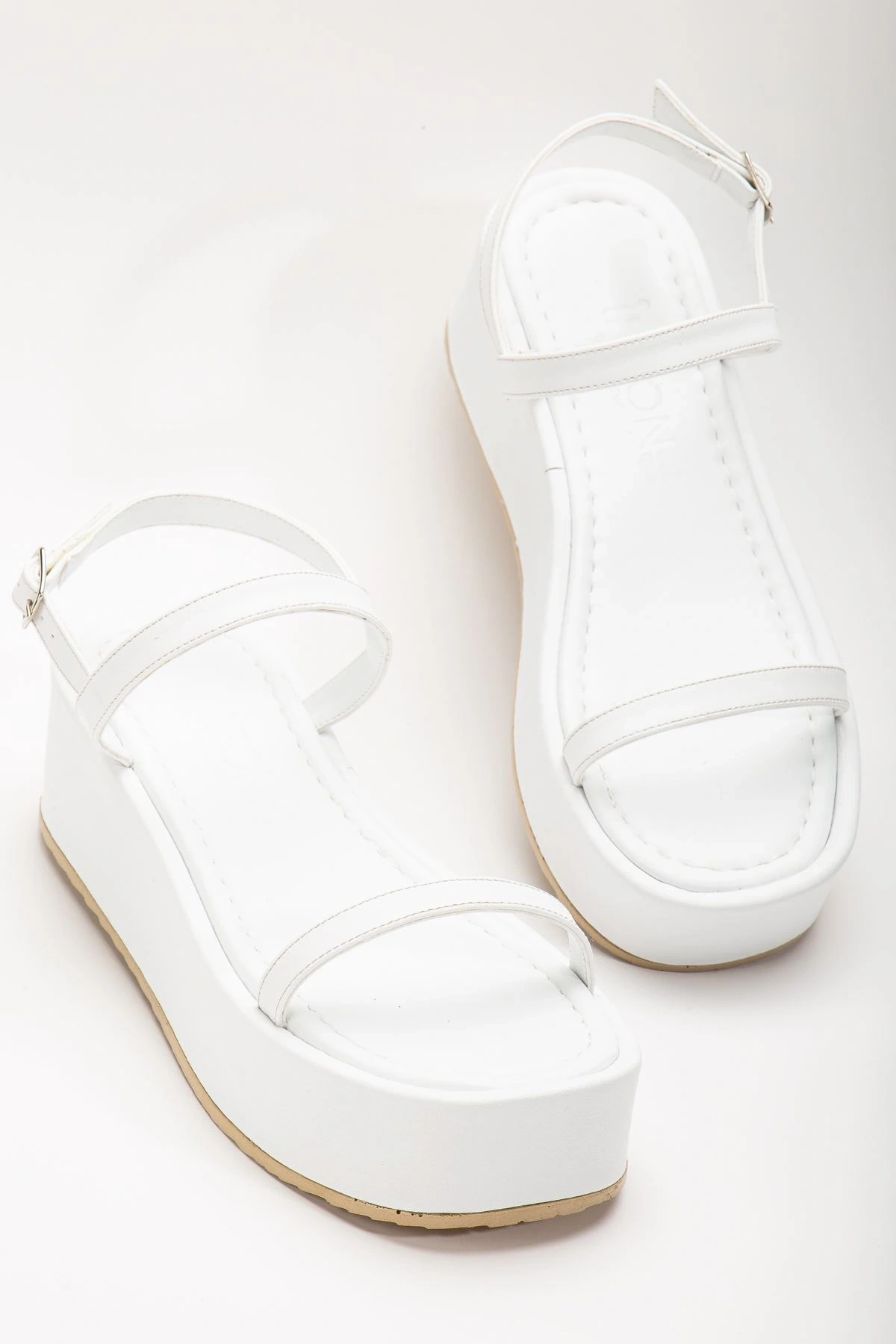 861-1027 Beyaz Dolgu Topuk Kadın Sandalet