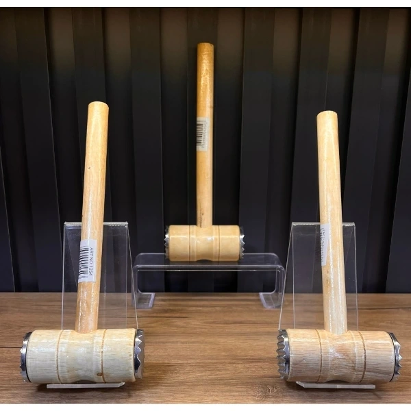 AHŞAP SAPLI ET DÖVME ÇEKİCİÜrün ÖzellikleriAhşap Saplı Et Dövme Çekici, mutfağınızda etleri kolayca dövebilmeniz için tasarlanmış pratik bir araçtır. Etin daha kolay pişmesi ve lezzetinin artması için etin dokusunu yumuşatarak, daha yumuşak ve lezzetli yemekler hazırlamanıza olanak tanır. Ahşap sapı sayesinde rahat kavranır ve uzun süreli kullanımda konfor sağlar. Üst kısmındaki metal dişli yapısı etleri eşit şekilde döverek düzgün sonuç almanızı sağlar. Hem evde hem de profesyonel mutfaklarda kullanılabilecek dayanıklı bir üründür.Paket İçeriği1 Adet Ahşap Saplı Et Dövme Çekici