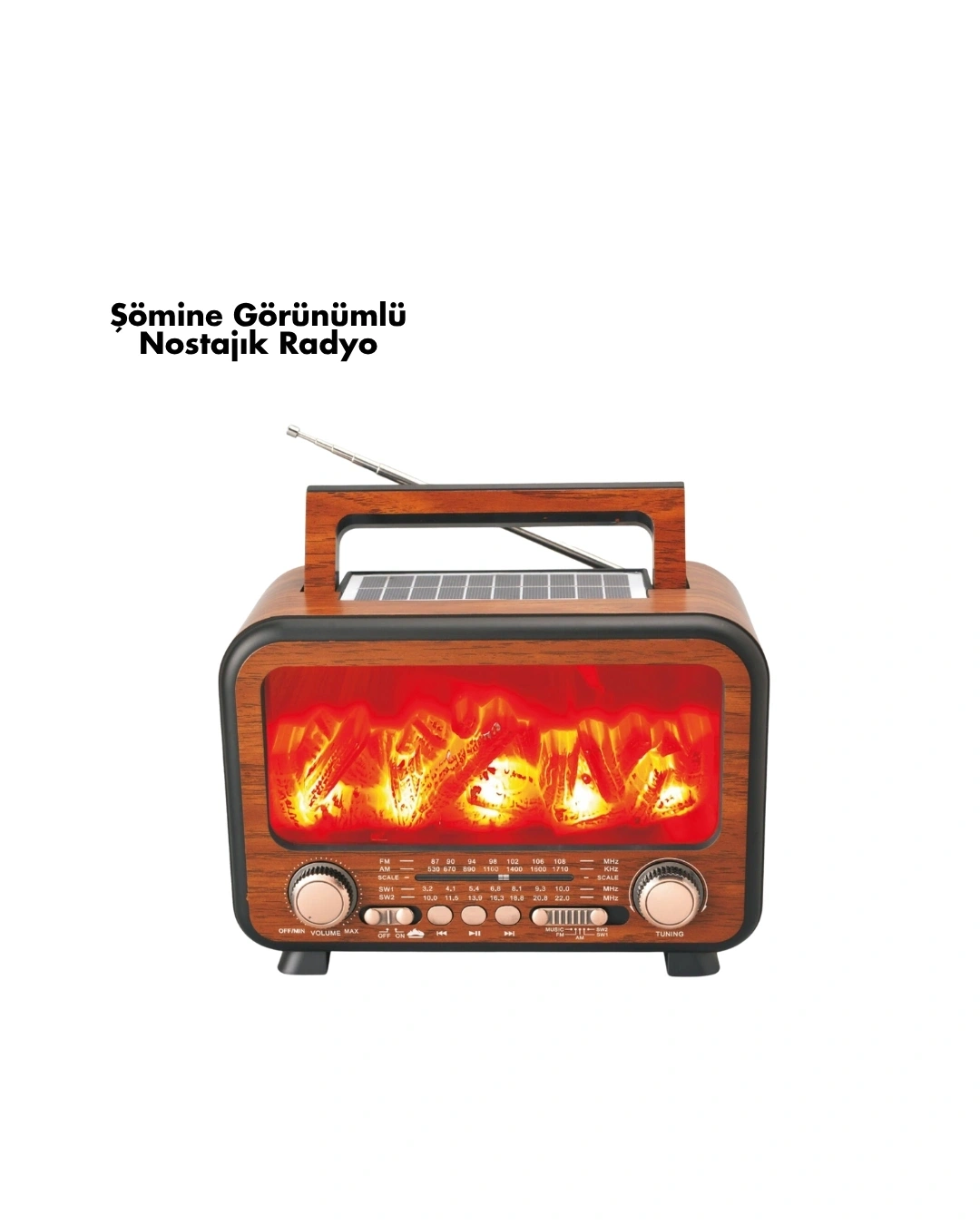 Müziğin enerjisini ve şömine sıcaklığını bir arada sunan bu taşınabilir solar Bluetooth hoparlör, hem görsel hem işitsel olarak etkileyici bir deneyim sağlar.Şömine alev ışığı efekti, loş ortamlarda rahatlatıcı bir atmosfer oluşturur. 7W hoparlör gücü, güçlü ses çıkışı ve derin bas dengesiyle her ortamda net müzik keyfi sunar.Bluetooth 5.3 teknolojisi, 10 metreye kadar kararlı bağlantı sağlar. Ayrıca USB, TF kart ve AUX girişiyle çok yönlü kullanım mümkündür.Dahili FM/AM/SW radyo özelliği, dilediğiniz istasyonu kolayca bulmanızı sağlar. Solar panel, güneş enerjisini toplayarak cihazı şarj eder; böylece doğada bile elektriksiz müzik keyfi yaşarsınız.Şarj edilebilir 18650 pil, uzun süreli kullanım sağlar. Plastik gövde dış mekanlara uygun dayanıklılık sunar. 250x145x180 mm boyutları ve 1.63 kg ağırlığı, taşımayı kolaylaştırır.Dahili mikrofon özelliğiyle eller serbest telefon görüşmeleri yapabilirsiniz.Kamp, piknik, bahçe veya sahil fark etmez — bu hoparlör, her ortamda sıcak bir ambiyans ve güçlü ses performansını birleştirir.Hem enerji tasarruflu hem de çevre dostu olan bu solar hoparlör, teknolojiyi estetikle buluşturan mükemmel bir seçimdir.