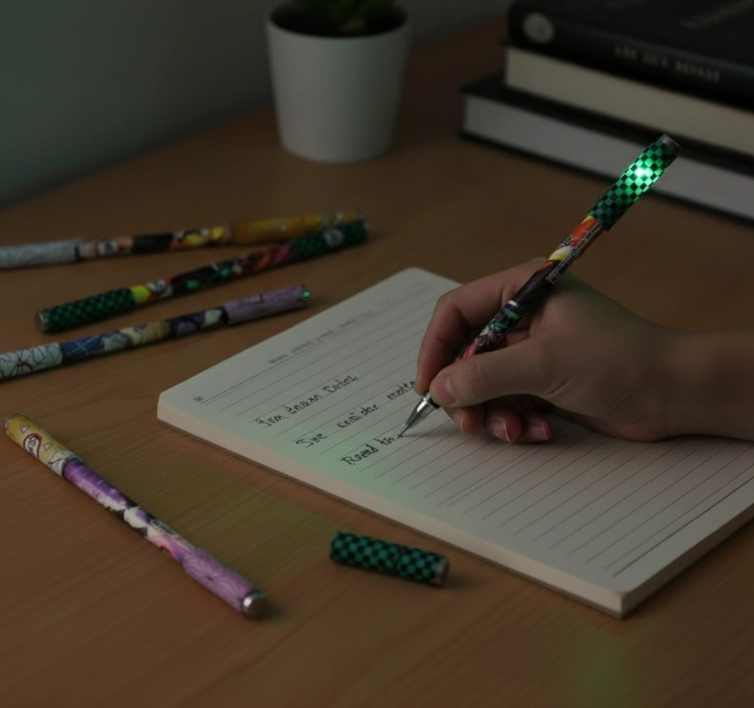 Anime Figürlü LED Işıklı Tükenmez KalemAnime dünyasının büyüsünü yazı masanıza taşıyın! Şık tasarımı ve üzerinde yer alan ikonik anime figürüyle dikkat çeken bu kalem, sadece bir yazı aracı değil, aynı zamanda masanızın en havalı parçası olacak. Entegre LED ışık özelliği sayesinde karanlıkta bile yazım yapmayı mümkün kılarken, akıcı mürekkep yapısıyla kağıt üzerinde kusursuz bir performans sergiler. Hem günlük notlarınızda kullanabileceğiniz hem de koleksiyonunuza ekleyebileceğiniz bu kalem, dayanıklı yapısıyla uzun süreli bir macera sunuyor.Teknik ÖzelliklerÖzellikAçıklamaTasarımÖzel Anime Figürlü BaşlıkIşık ÖzelliğiEntegre Parlak LED IşıkKalem TürüAkıcı Mürekkepli Tükenmez KalemMateryalDayanıklı ve Hafif GövdeKullanım KonforuErgonomik Tutuş ve Yumuşak YazımKullanım AlanıOkul, Ofis, Günlük Yazım ve KoleksiyonPaket İçeriği1 Adet Anime Figür Tükenmez Kalem LED'li
