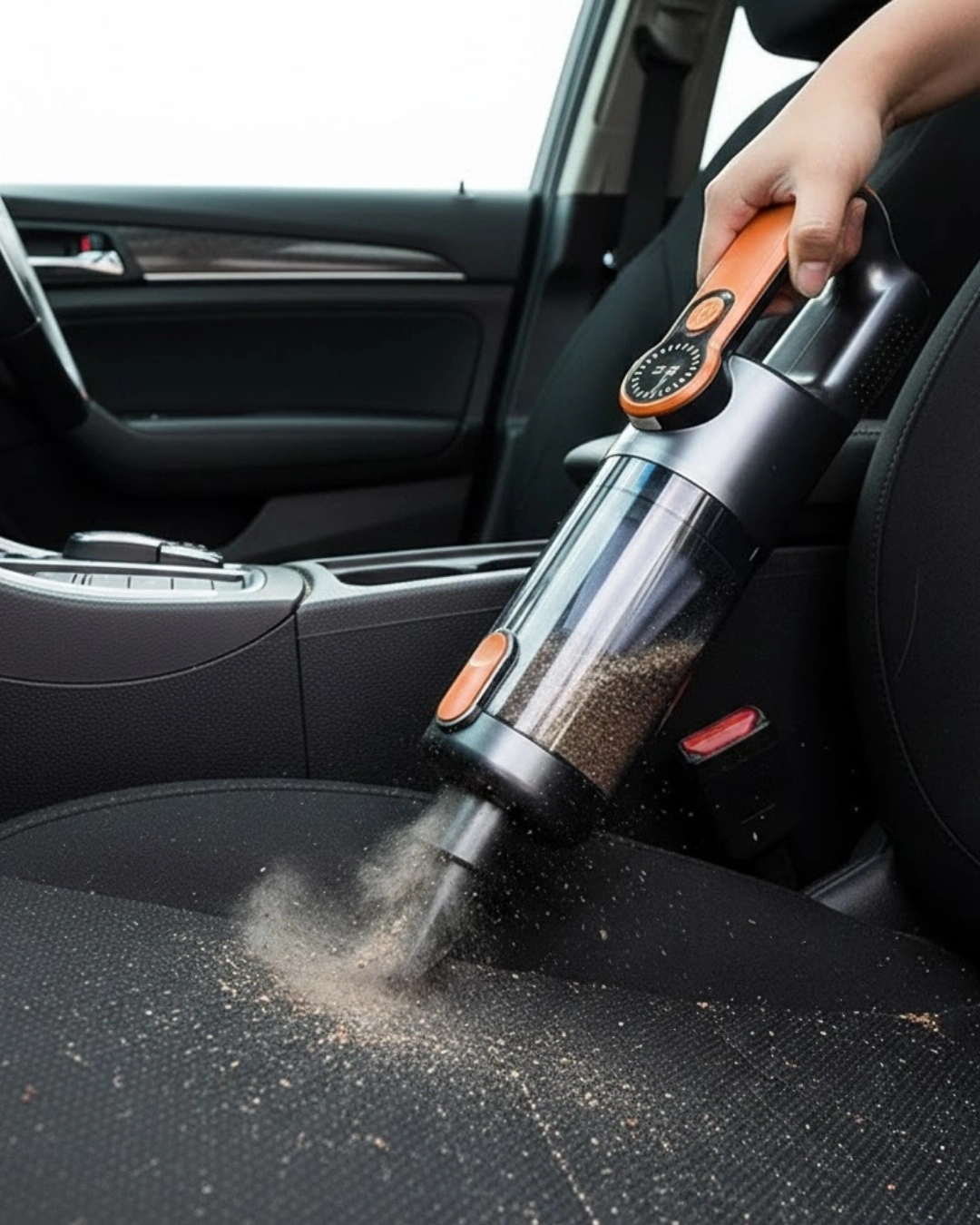 Kablosuz şarjlı el süpürgesi, kompakt yapısı ve yüksek performansı ile temizlik işlerini zahmetsiz hale getirir. Priz ve kabloya ihtiyaç duymadan çalışması sayesinde özgür kullanım sunar. Ev, araç, ofis ve masa üstü gibi alanlarda çok yönlü kullanım imkanı sağlar.Güçlü emiş performansı, toz, kırıntı, saç, kıl ve ince partiküllerin kısa sürede temizlenmesini mümkün kılar. Dar alan uç aparatı, özellikle koltuk araları ve köşelerde etkili sonuçlar sunar. Araç içi temizlik için ideal boyutları sayesinde paspaslar, koltuk altları ve bagaj alanlarında rahatlıkla kullanılabilir.Type C şarj girişi, hızlı ve kolay şarj avantajı sunar. Şarjlı yapısı sayesinde ürün her an kullanıma hazır olur. Hafif ve ergonomik tasarımı, tek elle kullanım kolaylığı sağlarken uzun süreli temizliklerde bile kullanıcıyı yormaz.Şeffaf toz haznesi, doluluk seviyesinin net şekilde görülmesine olanak tanır. Toz haznesi tek hareketle çıkarılıp boşaltılabilir. Kolay çıkarılabilir ve yıkanabilir filtre sistemi, hijyenik kullanım açısından büyük avantaj sağlar ve süpürgenin performansını uzun süre korur.Düşük ses seviyesi ile çalışan kablosuz el süpürgesi, sessiz ve konforlu bir temizlik deneyimi sunar. Dayanıklı gövde yapısı sayesinde uzun süreli kullanım için uygundur. Modern ve şık tasarımı ile hem işlevsel hem de estetik bir temizlik ürünü olarak öne çıkar.