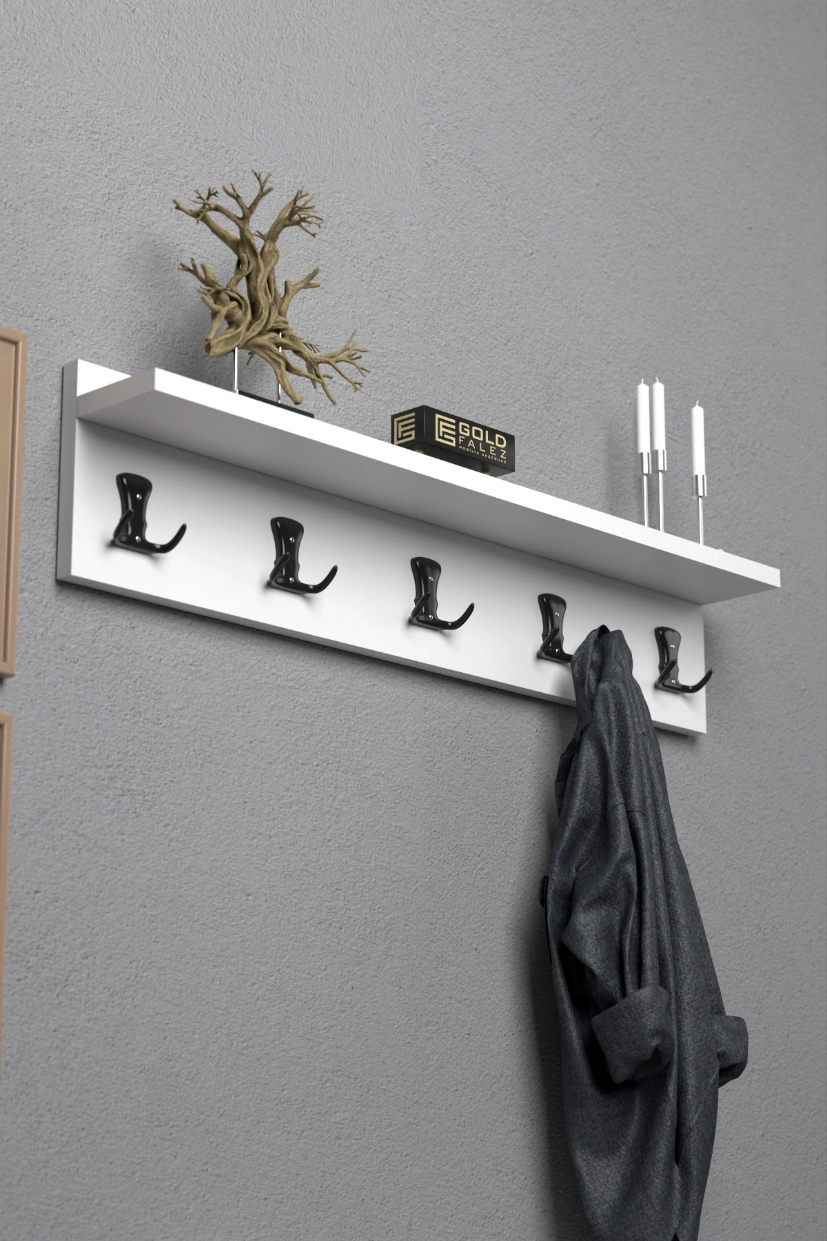 Askılık Duvar Elbise Askılığı Portmanto 80 Cm Beyaz Düz