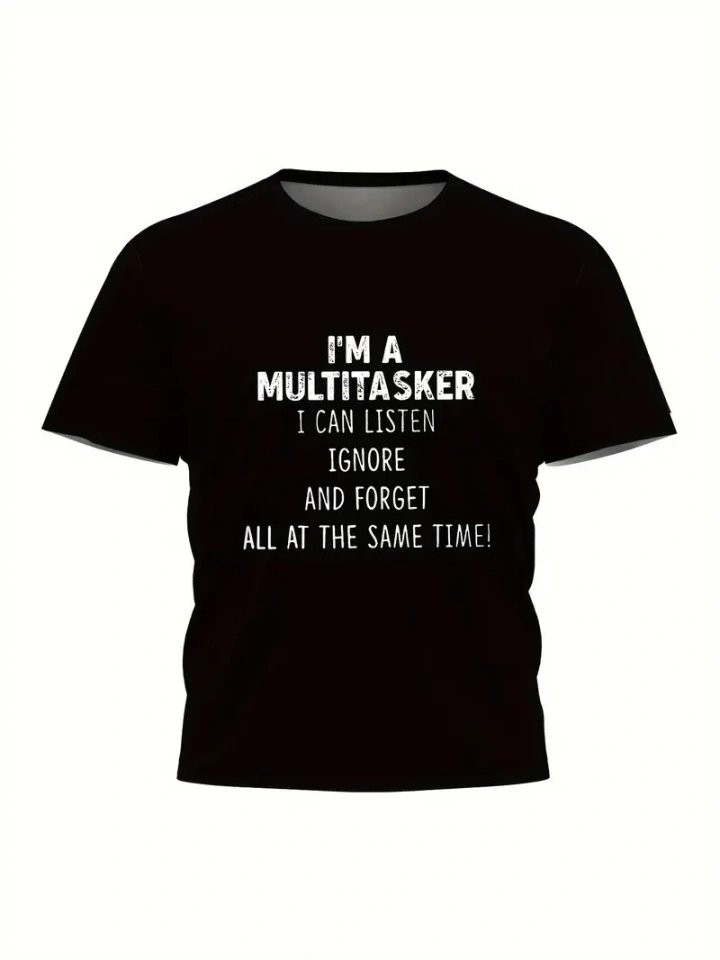 Baskılı Oversize Bisiklet Yaka T-shirt - Siyah