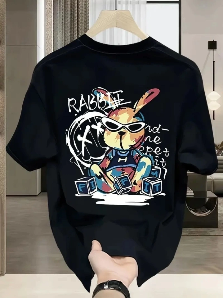 Baskılı Oversize Bisiklet Yaka T-shirt - Siyah