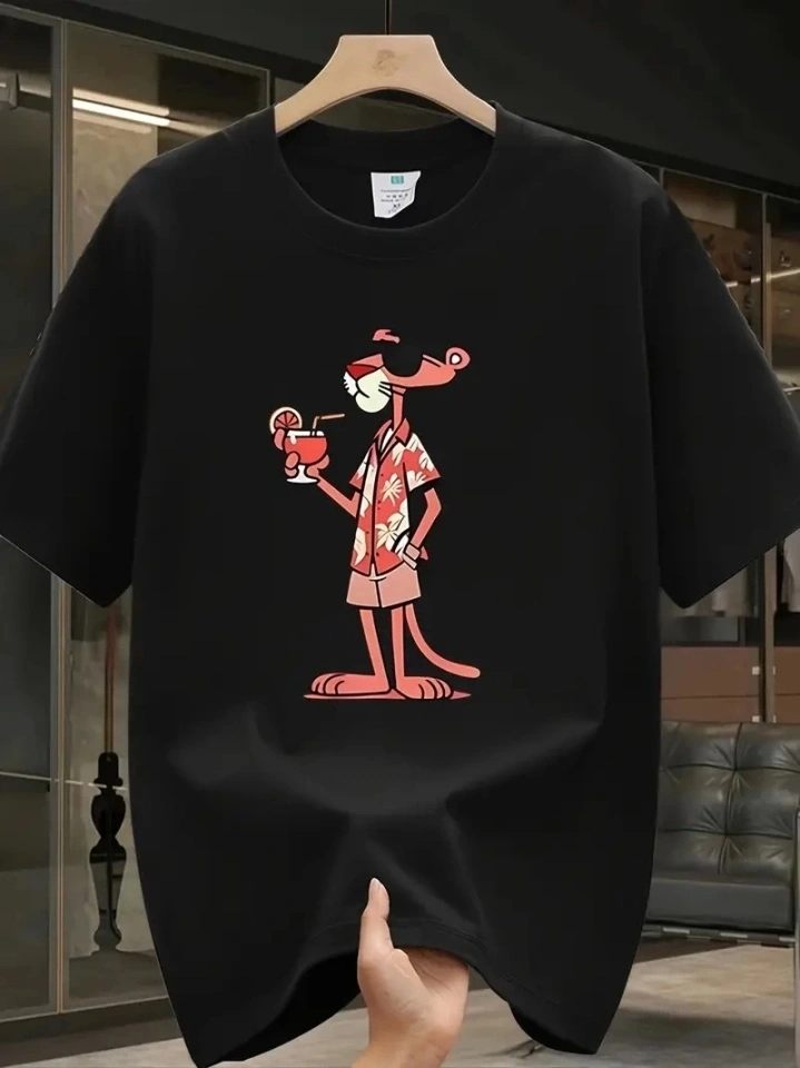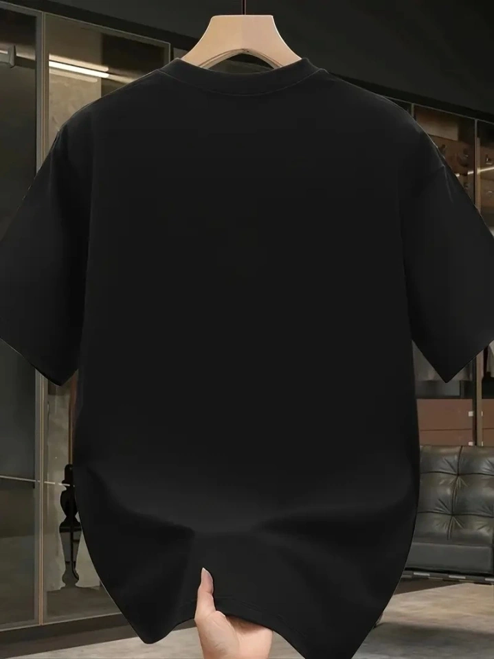 Baskılı Oversize Bisiklet Yaka T-shirt - Siyah