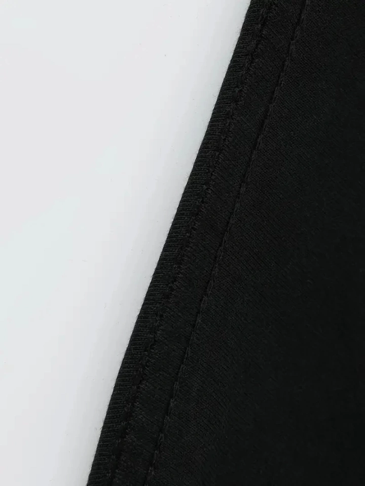 Baskılı Oversize Bisiklet Yaka T-shirt - Siyah