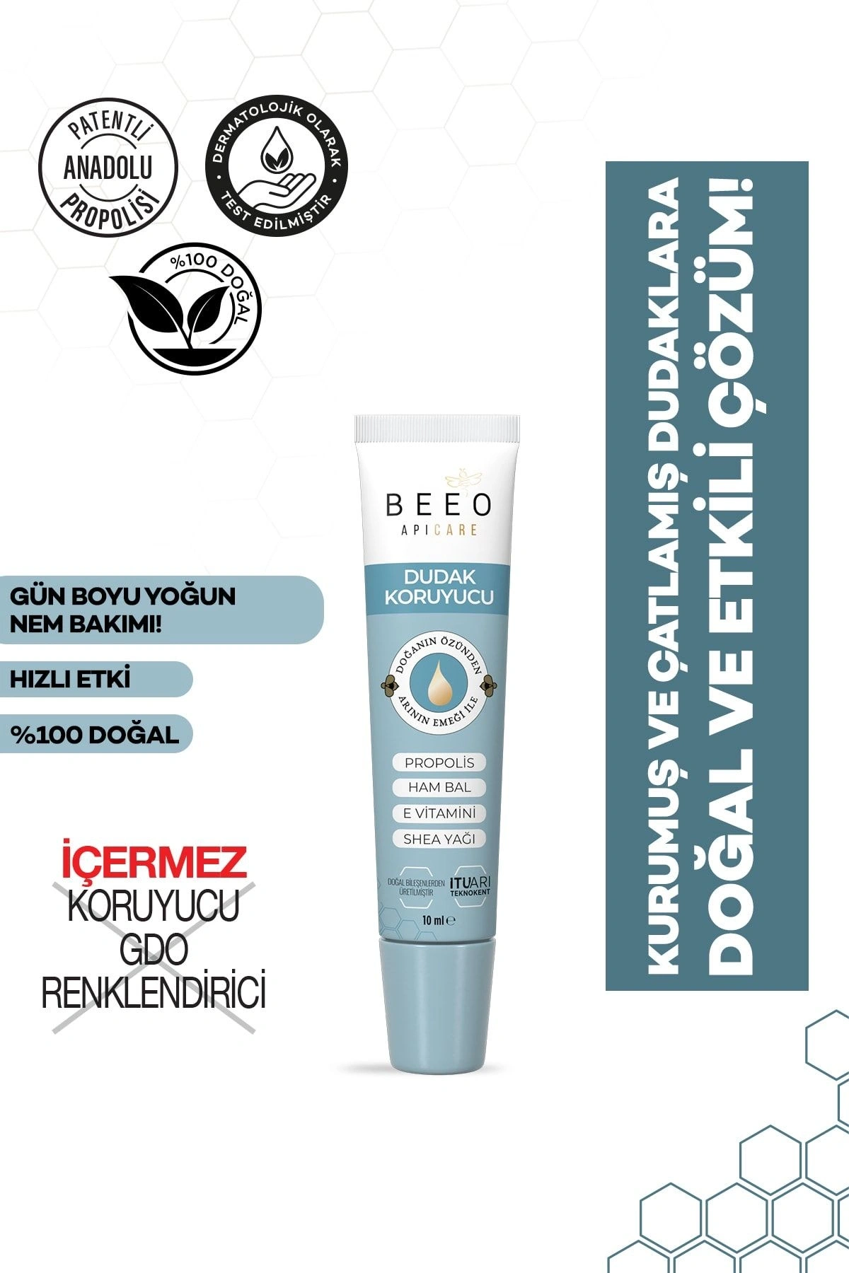 BEE’O APICARE Propolisli Ham Ballı Dudak Koruyucu ile daha canlı dudaklar! Besleyici doğal formülüyle kurumuş ve çatlamış dudakları yumuşatır. Doğal koruyucu bariyer etkisiyle her hava koşuluna karşı etkilidir.