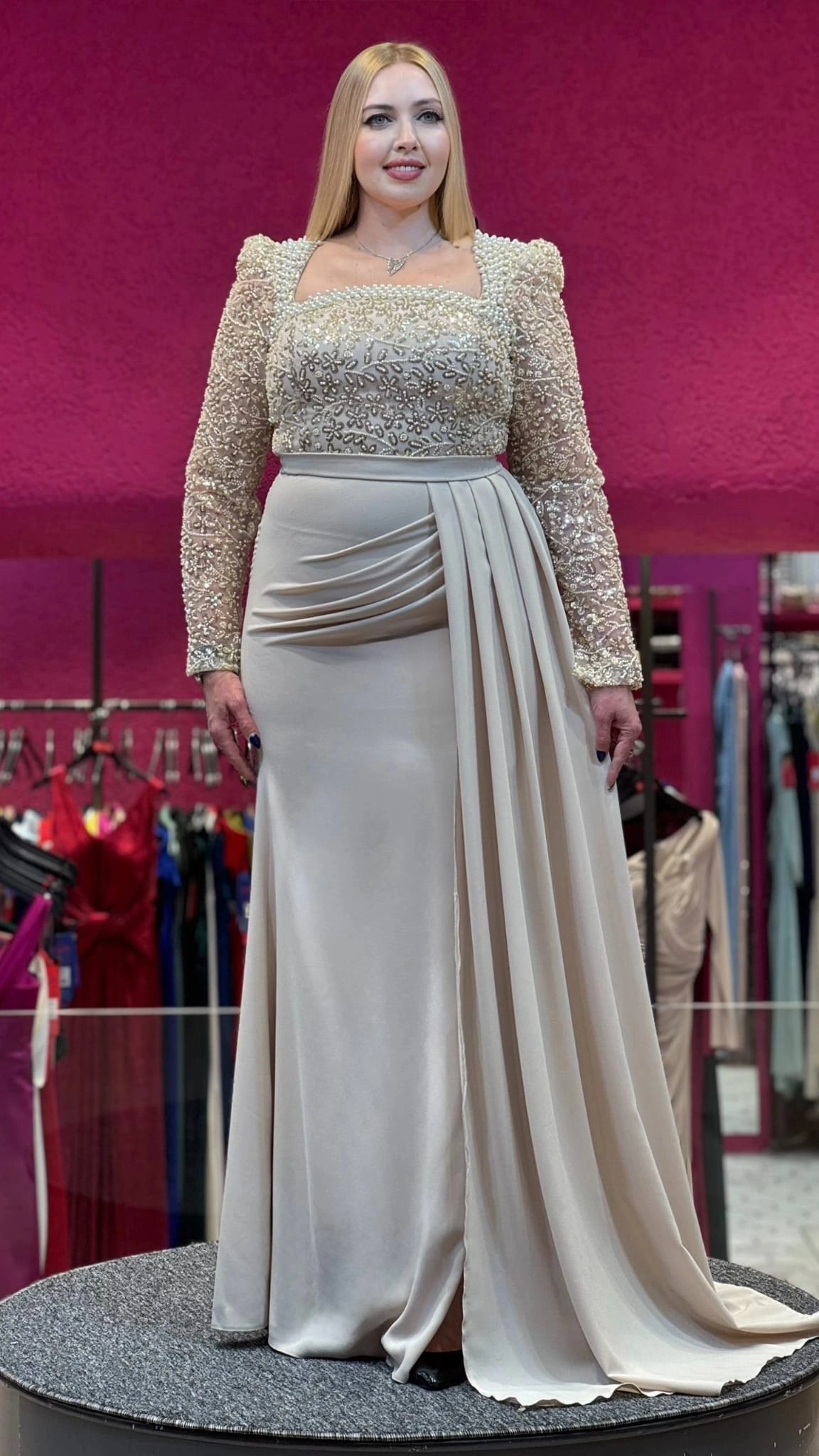 Modelin Ölçüleri: Boy:165, Kg:55, Göğüs:90, Bel:72, Kalça: 100