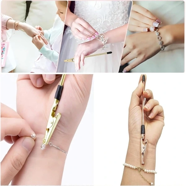 BİLEKLİK TAKMA YARDIMCI APARATIÜrün ÖzellikleriBileklik Takma Yardımcı Aparatı, bilekliğin ucunu aparatın ucundaki klipse sıkıştırarak, tek elle kolayca bileklik takma imkanı sunar. Özellikle toka kapama zorluğu yaşayan kullanıcılar için idealdir. Kompakt boyutları sayesinde çantada veya takı kutusunda rahatlıkla taşınabilir. Zincirli, klipsli ya da kancalı bileklik çeşitleriyle kullanılabilir. Metal tutucu uç ve ergonomik sap yapısı sayesinde uzun ömürlü kullanım sağlar. Bu pratik aksesuar, kullanıcıların bilekliklerini tek başlarına kolayca takabilmelerini sağlar. Bileklik ucunu klipse takın ve sıkıştırın. Aleti bilekliğin takılı olduğu kolunuzda tutun. Serbest elinizle toka kilidini bağlayın. Klipsi bırakın ve bilekliğiniz hazır!Paket İçeriği1 Adet Bileklik Takma Yardımcı Aparatı