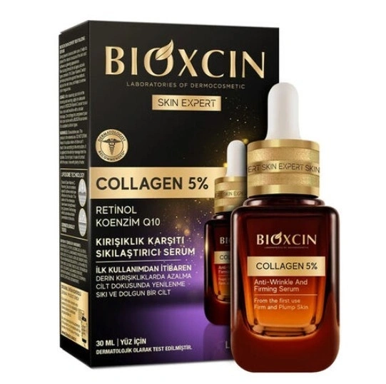 Bioxcin Kırışıklık Karşıtı Sıkılaştırıcı Serum klasik cilt bakımının ötesine geçerek cildin doğal yapısının korunmasına ve ışıltılı bir cilt görünümüne kavuşmasına yardımcı olur. Her yaşa ve cilt tipine uyumlu olarak formüle edilmiş Bioxcin Kırışıklık Karşıtı Sıkılaştırıcı Serum, Retinol ve Coenzim Q10’un mükemmel birlikteliği ile sinerjik olarak etki ederek cilt hücrelerini uyarmaya destek olur. Konsantre formül, oluşmuş kırışıklıkları gidermeye yardımcı olurken yeni oluşabilecek kırışıklıklara karşı cildi destekler. Ciltteki ince çizgilerin görünümünün azalmasına ve elastikiyet kaybının önlenmesine yardımcı olur. Bioxcin Kırışıklık Karşıtı Sıkılaştırıcı Serum’un kolajen sentezini 8 kata kadar arttırdığı klinik çalışmalarda gözlemlenmiştir*.