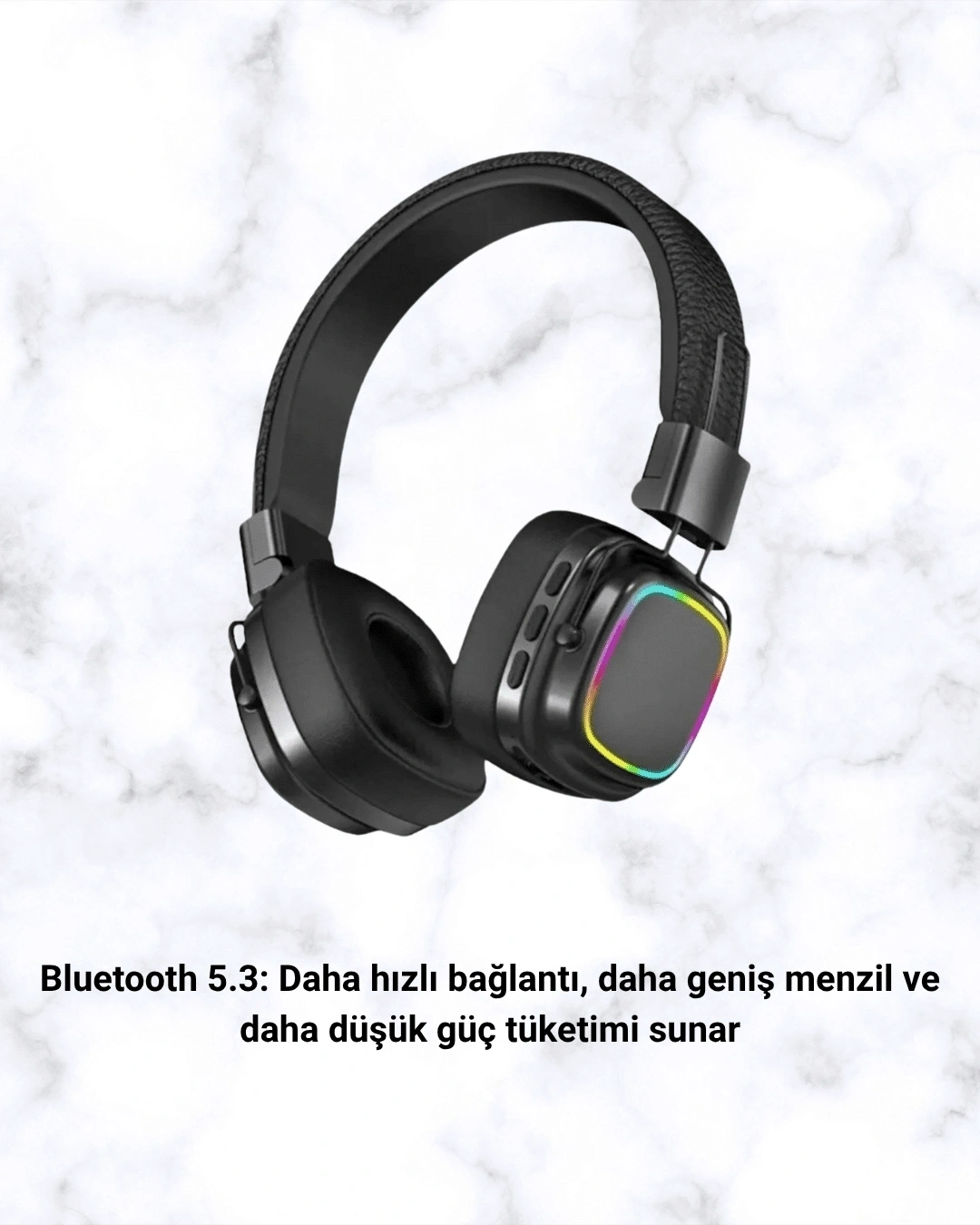 Bluetooth 5.3 Rainbow Işıklı Kulak Üstü Kablosuz Kulaklık