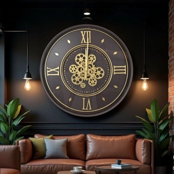 ÇARKLI DUVAR SAATİ 55 CMÜrün Özellikleri55 cm çapındaki çarklı duvar saati, büyük boy ölçüsü ve iç kısmında yer alan detaylı mekanik çark tasarımıyla bulunduğu ortamda güçlü ve dikkat çekici bir dekoratif etki oluşturur. Görselde de net şekilde görülen açık mekanizmalı çark detayı, saate endüstriyel ve vintage tarzı bir karakter kazandırırken, Roma rakamlı kadran yapısı klasik estetik anlayışı modern çizgilerle birleştirir. Altın tonlu çark ve rakam detayları, koyu zeminle kontrast oluşturarak saatin uzaktan bile rahatça okunmasını sağlar. Geniş kadranı sayesinde salon, oturma odası, ofis, kafe, restoran ve loft tarzı mekânlarda dekorasyonun odak noktası haline gelir. Dengeli çalışan saat mekanizması sessiz bir kullanım sunarak yaşam alanlarında konfor sağlar. Sağlam gövde yapısı ve kaliteli malzeme hissi uzun ömürlü kullanım avantajı sunarken, duvara kolayca asılabilen tasarımı ile pratik kurulum imkânı sağlar. Dekorasyonda sıradan saatlerden farklı, prestijli ve karakter sahibi bir ürün arayan kullanıcılar için hem fonksiyonel hem de estetik açıdan güçlü bir tercihtir.Paket İçeriği1 adet Çarklı Duvar Saati 55 cm