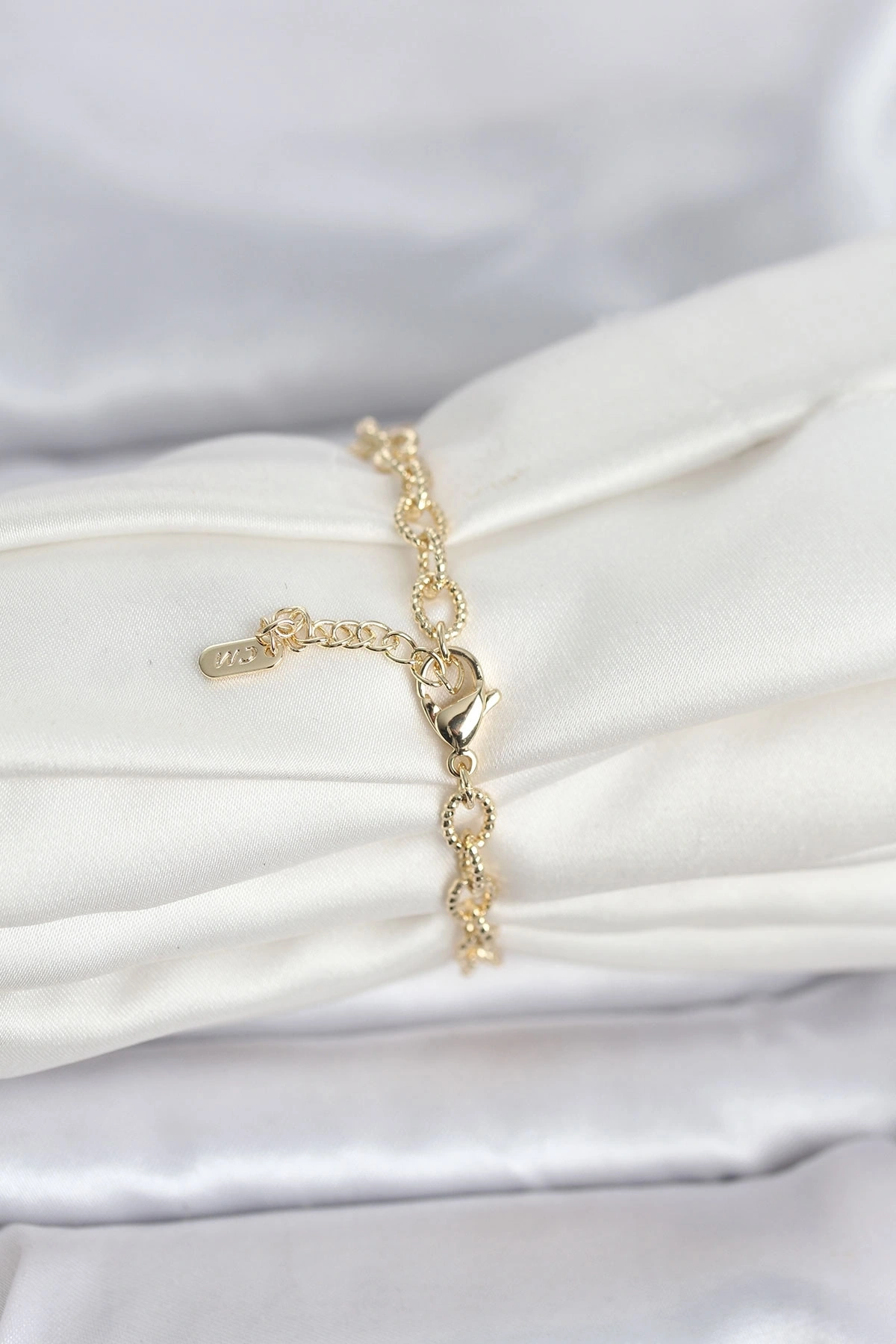 -Marka Kalitesi: CM markasının yüksek standartlı kaplama teknolojisi ile üretilmiştir.-Materyal: Dayanıklı pirinç materyal üzerine 1. Sınıf 14K Gold (Altın) Rengi Kaplama uygulanmıştır.-Dayanıklılık: Doğru ve özenli kullanımda kararma ve renk solmasına karşı dirençlidir.-Kullanım Önerisi: Ürününüzün ışıltısını ve kaplama kalitesini uzun yıllar koruyabilmesi için parfüm, su, deterjan ve kimyasal maddelerle doğrudan temasından kaçınmanızı öneririz.-Cilt Uyarısı: Her cilt yapısının metal ve kaplamalara vereceği tepki (pH değerine bağlı olarak) farklılık gösterebilir.-Sağlıklı ve mutlu günlerde kullanmanız dileğiyle.
