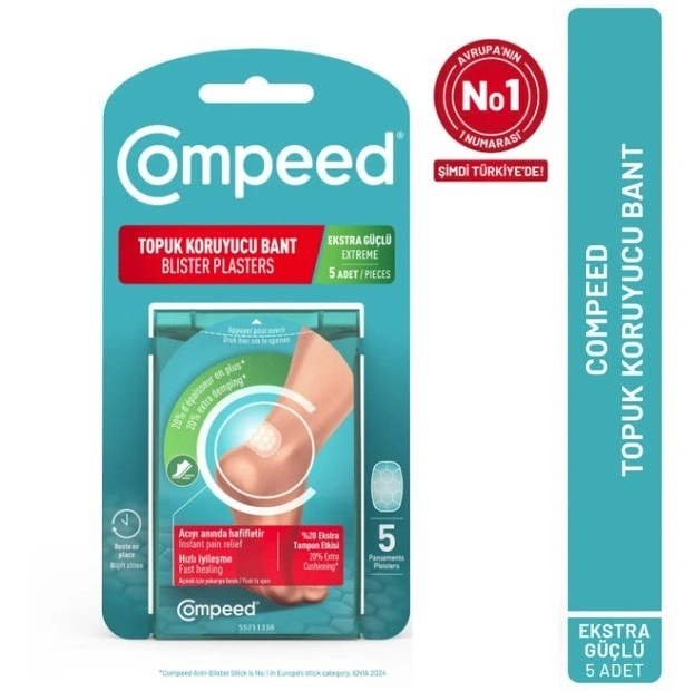 Compeed Topuk Koruyucu Bant Extra Güçlü, ayakkabı sürtünmesi sonucu oluşan su toplaması (blister), tahriş ve ağrıyı azaltmaya yardımcı olan özel hidrokolloid teknolojili ayak bakım bandıdır. Topuk bölgesine uygulandığında adeta ikinci bir deri gibi davranarak sürtünmeye karşı koruyucu bir bariyer oluşturur.