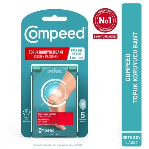 Compeed Topuk Koruyucu Bant Orta Boy, ayakkabı sürtünmesi nedeniyle oluşan su toplaması (blister), tahriş ve ağrıya karşı koruma sağlamaya yardımcı olan hidrokolloid teknolojili ayak bakım bandıdır. Topuk bölgesine özel tasarımı sayesinde cilde uyum sağlar ve sürtünme kaynaklı baskıyı azaltarak gün boyu konfor sunar.