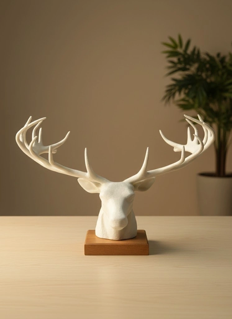 25 cm genişliğe sahip bu dekoratif geyik başı heykel, modern ve minimalist çizgileriyle yaşam alanlarınıza estetik bir dokunuş katar. Pürüzsüz yüzeyi, zarif boynuz yapısı ve dengeli formu sayesinde hem salon, ofis, yatak odası hem de çalışma alanlarında şık bir atmosfer oluşturur. Ürün, yüksek kalite malzemeden üretilmiş olup uzun süre formunu korur ve renk solması yapmaz. Fotoğraf çekimlerinde arka plan objesi, vitrin dekorasyonu veya masa üzerinde sanat eseri etkisi yaratmak için idealdir. Yumuşak ve doğal tonlardaki dekorlarla mükemmel uyum sağlar, mekanınıza sıcak ve dengeli bir karakter kazandırır.